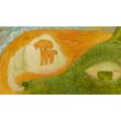 Obraz przedstawia symboliczną scenę, galimatias o nazwie Paski czasu. Po prawej stronie klepsydra trzymana w psich łapkach, z lewej drzewka, ryba i zaskakująca jasna chmura o kształcie owocu. Jedną z najpiękniejszych metafor czasu, z jaką się spotkałam był tekst z filmu Teo Angelopoulosa: Czas to dziecko grające w kości nad brzegiem morza.