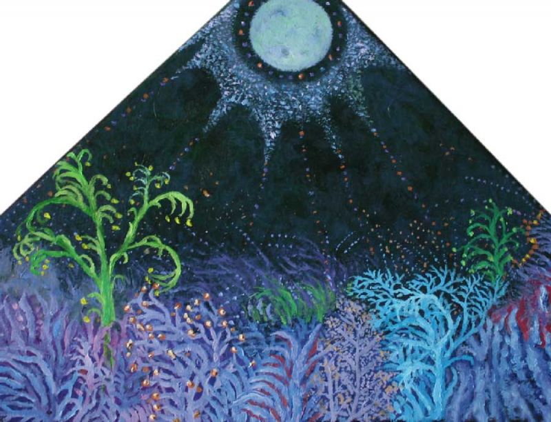 Reflektorem w mrok, obraz olejny namalowany na trójkątnym blejtramie.