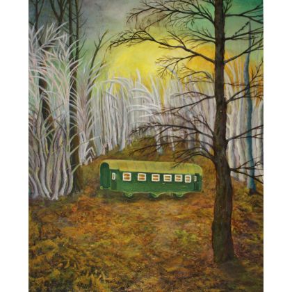 Obraz olejny, malowany na płycie, wymiary: 52 x 65 cm.