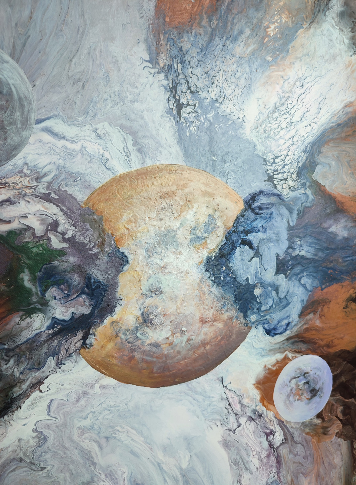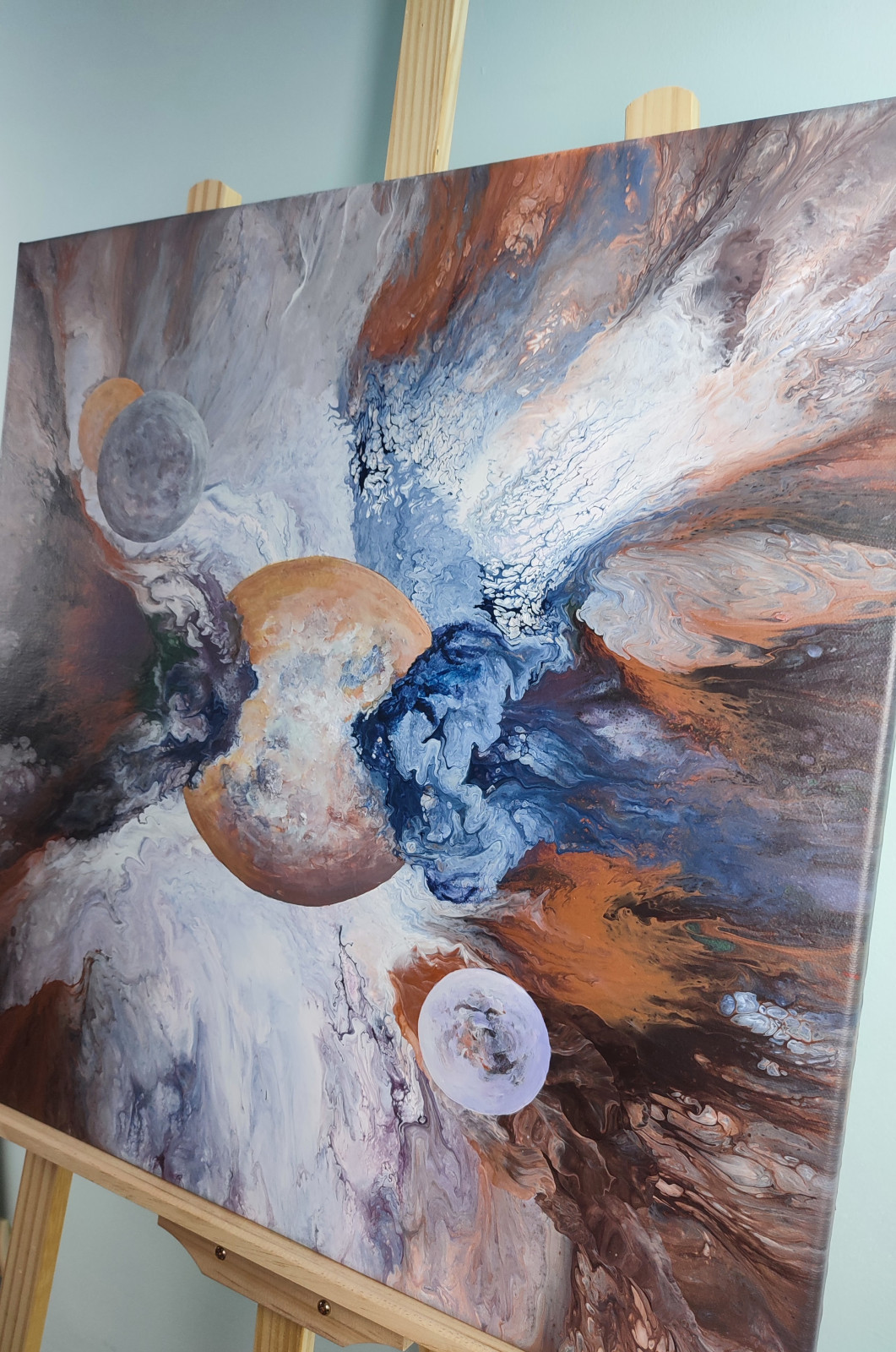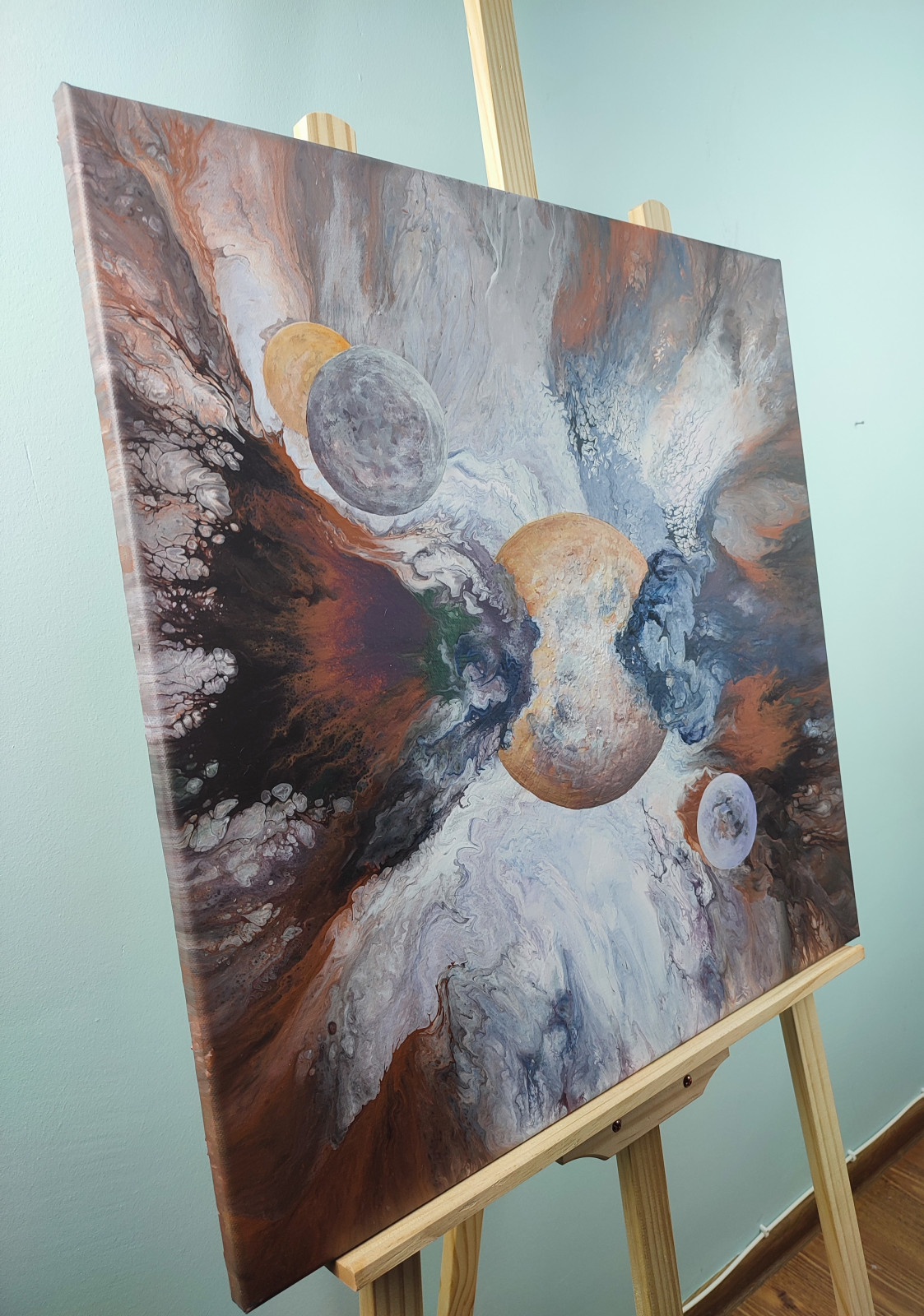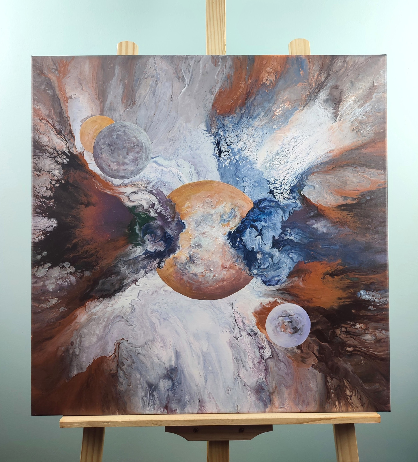 Technika: akryl. Metoda pouringu - unikalna kompozycja, której nie da się ponownie odtworzyć.
