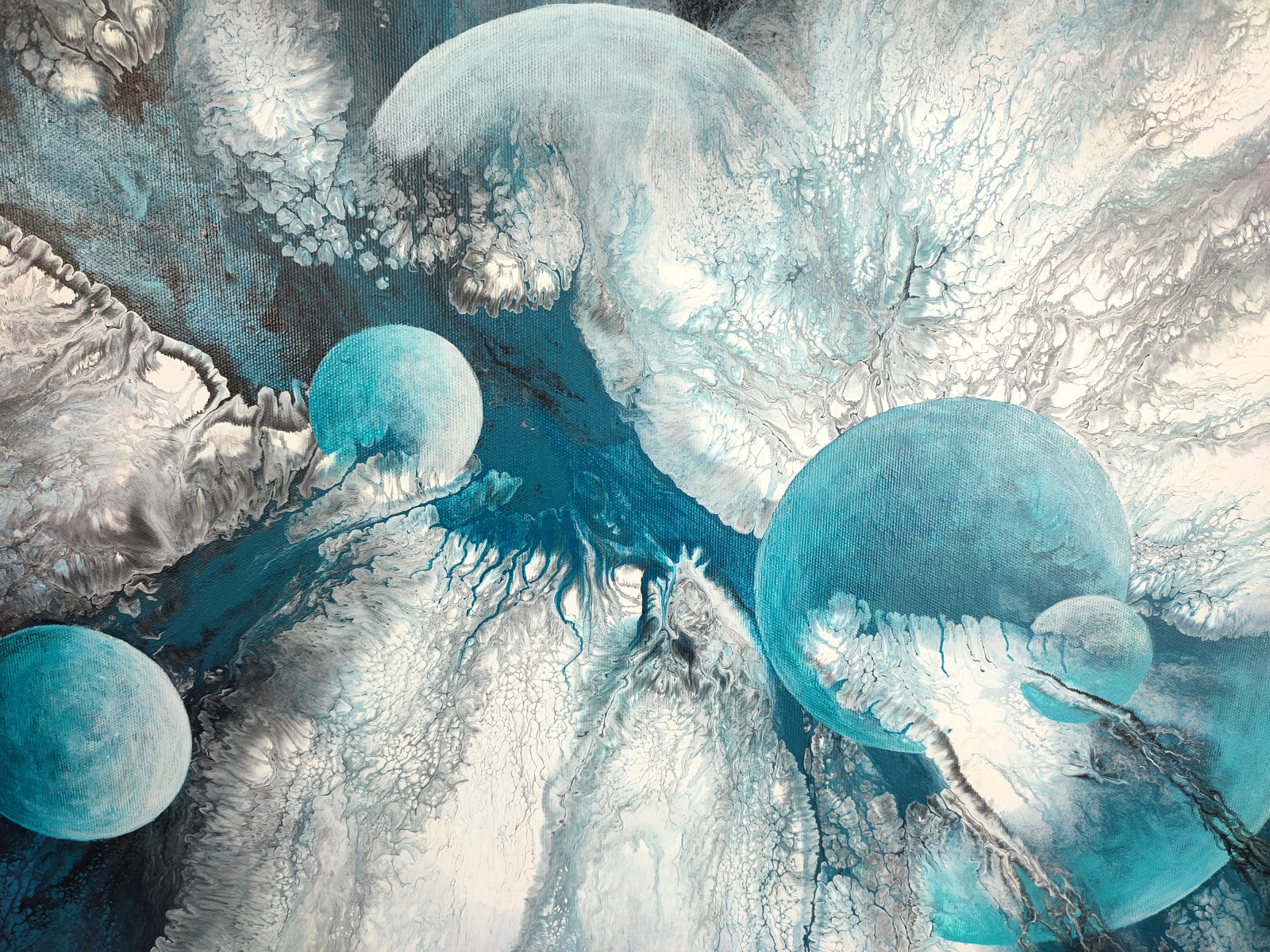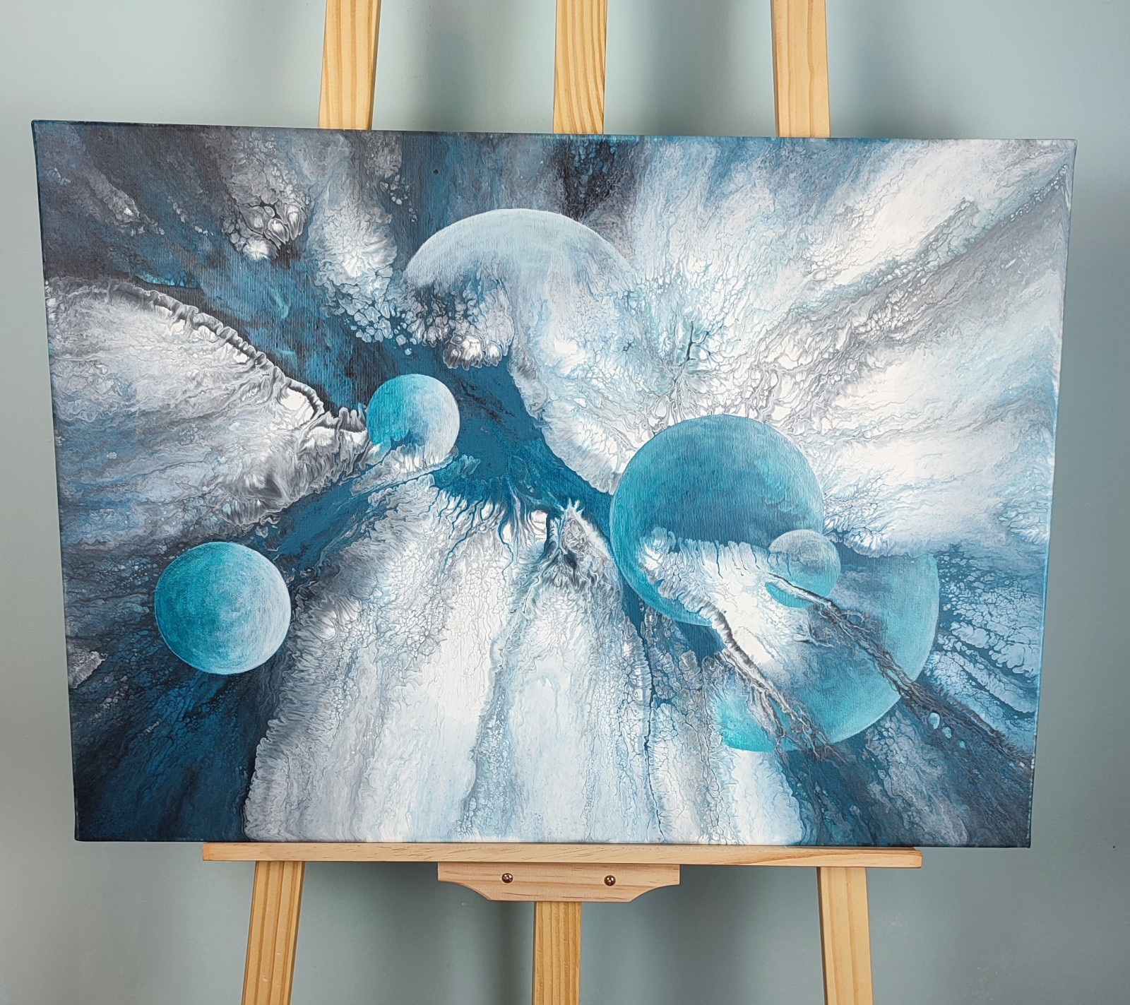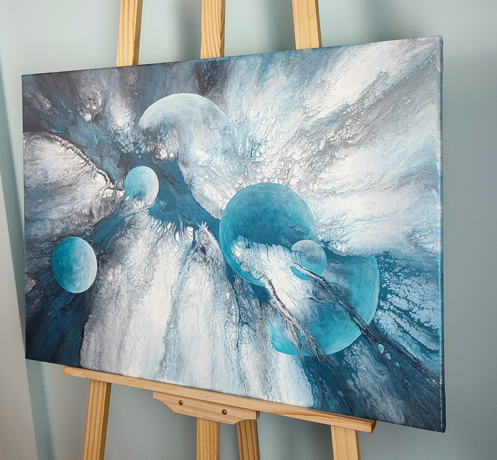 Technika: akryl. Metoda pouringu - unikalna kompozycja, której nie da się ponownie odtworzyć.