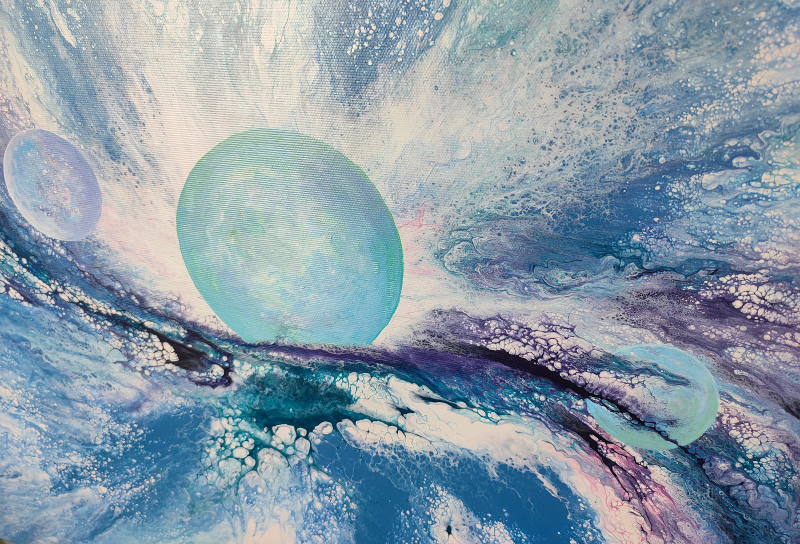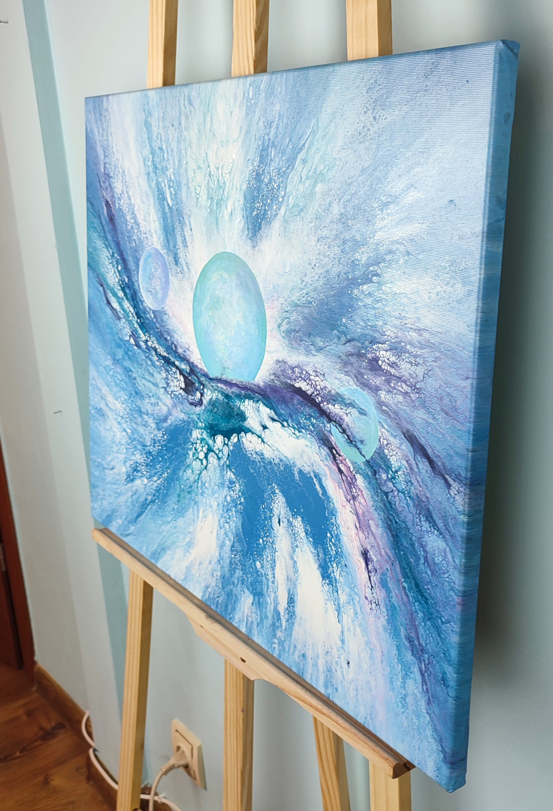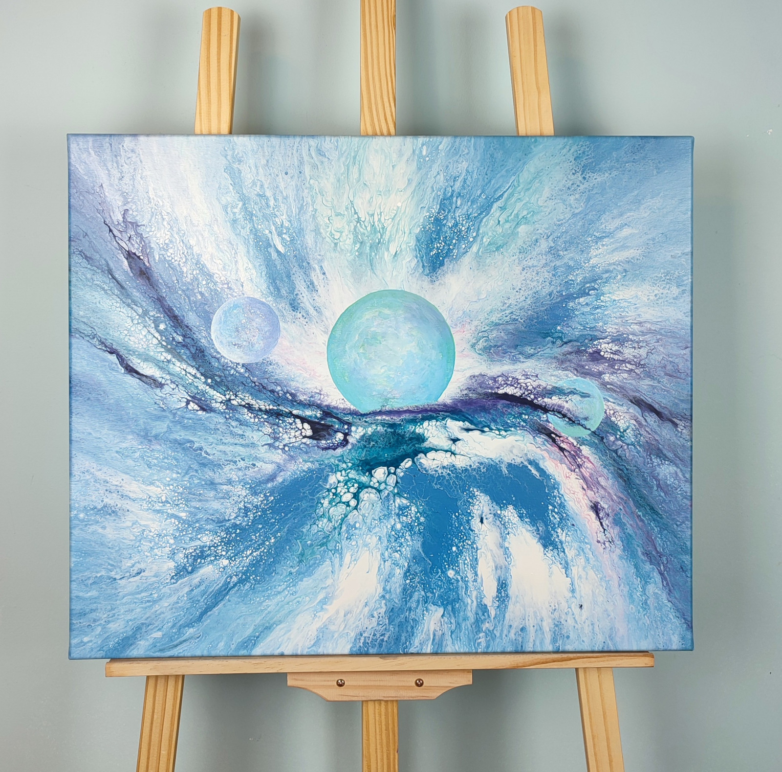 Technika: akryl. Metoda pouringu - unikalna kompozycja, której nie da się ponownie odtworzyć.