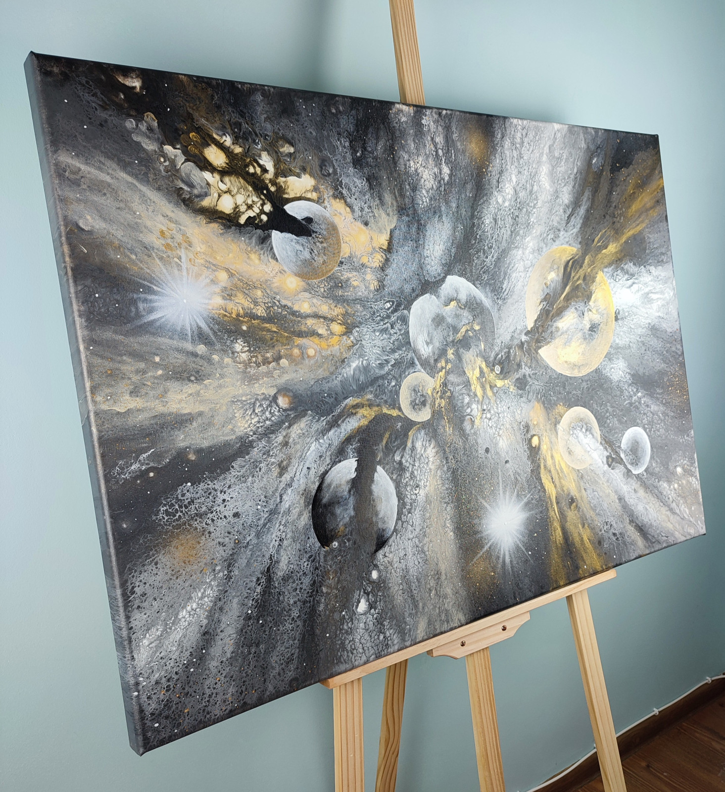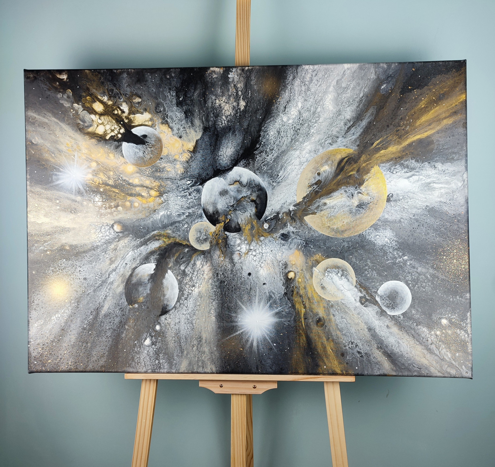 Technika: akryl. Metoda: pouring - unikalna kompozycja, której nie da się ponownie odtworzyć.