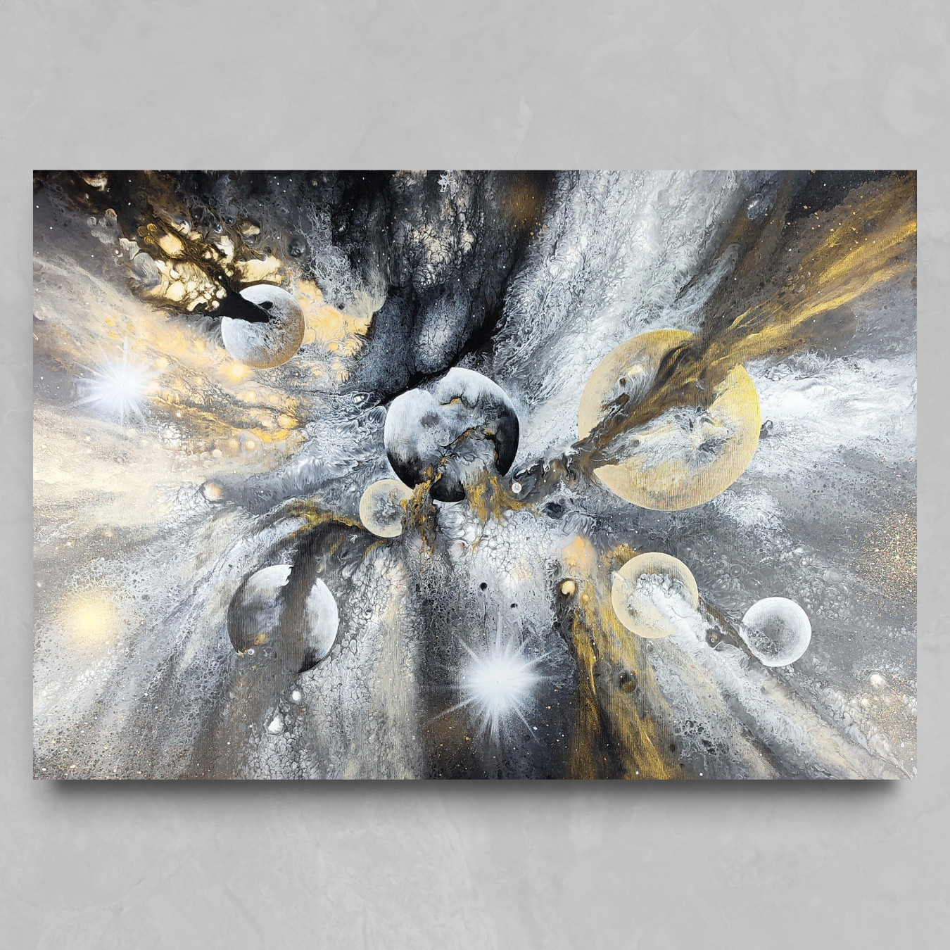 Czarno-złoty kosmos - Obraz akrylowy na płótnie 70x100