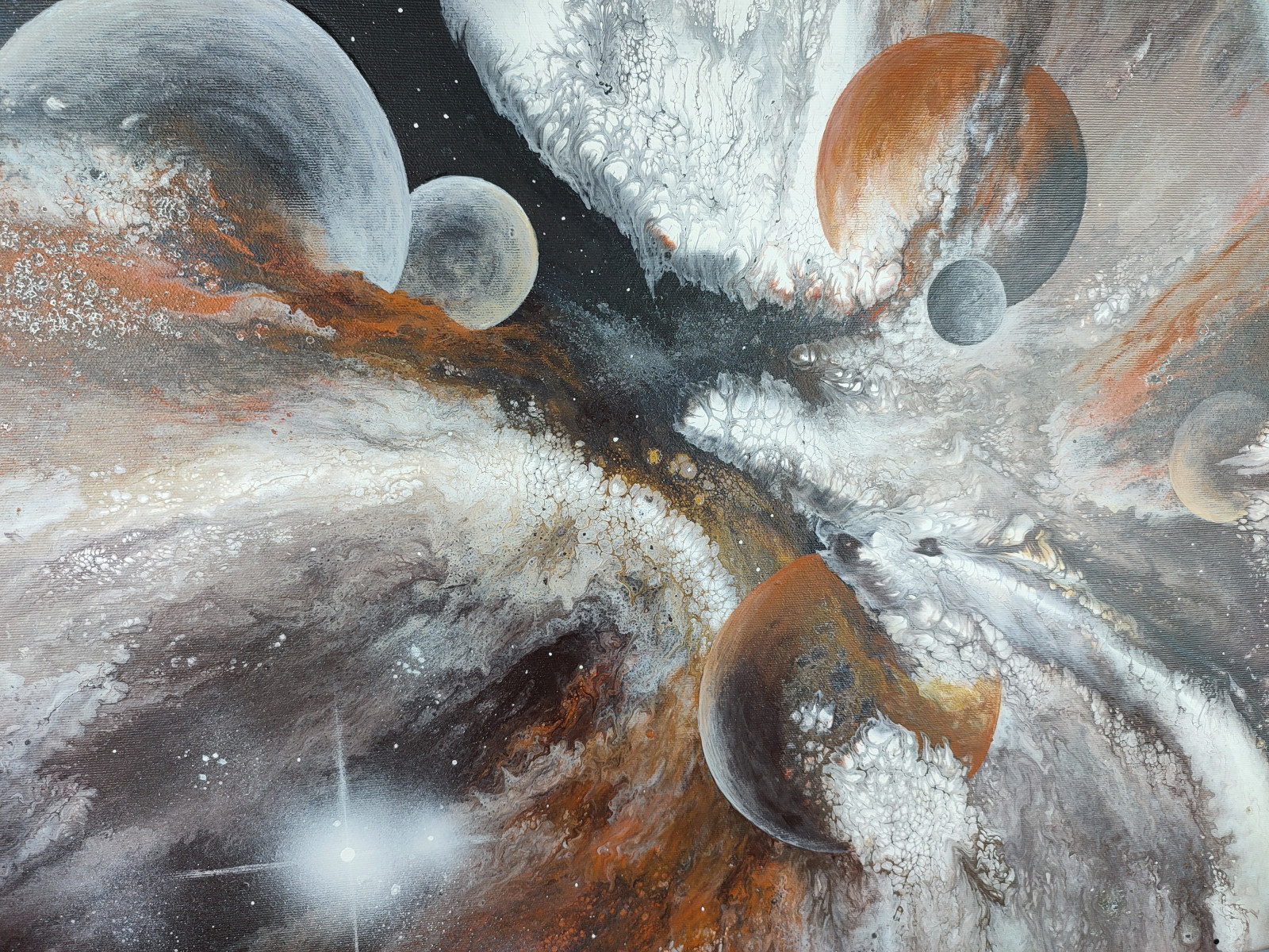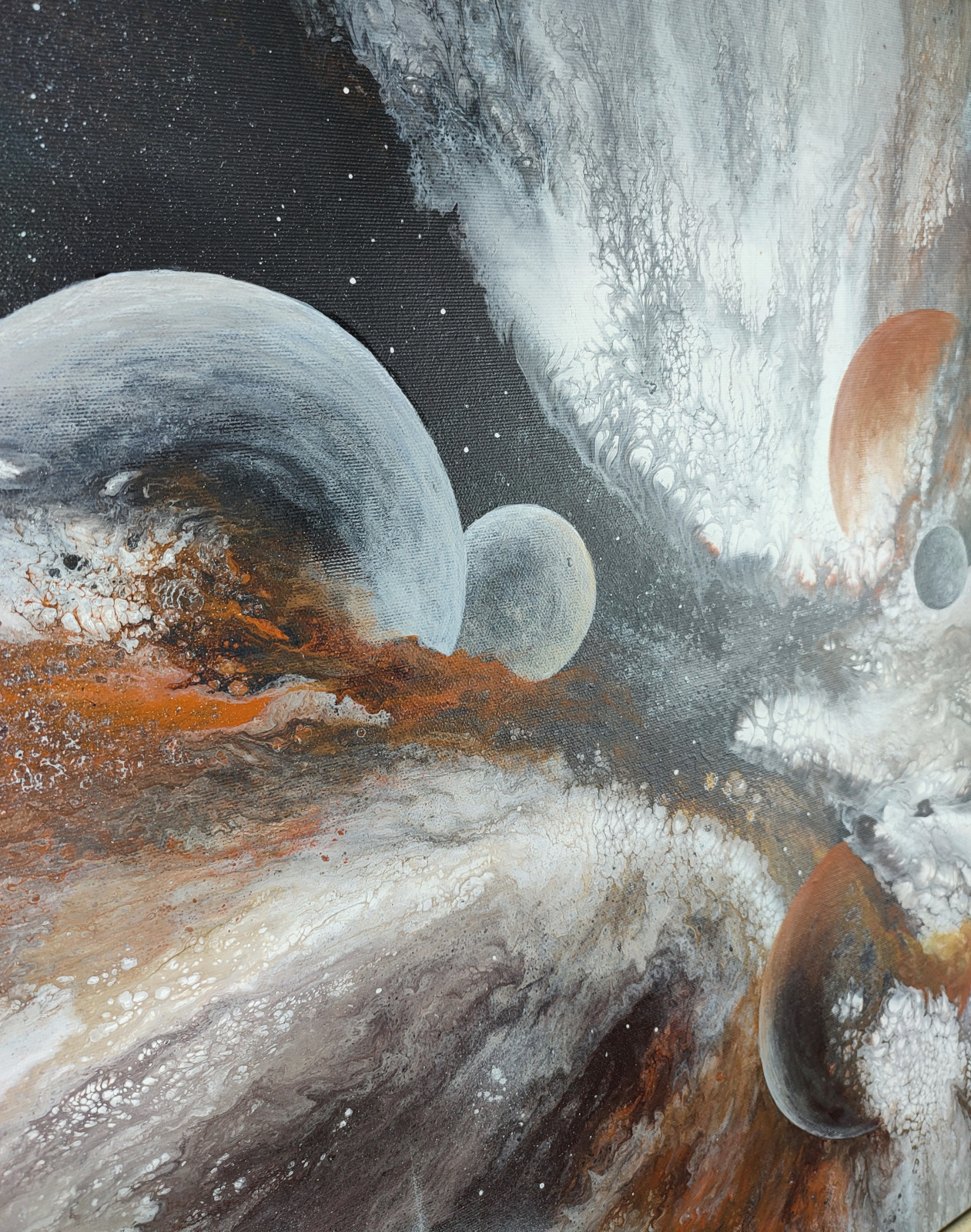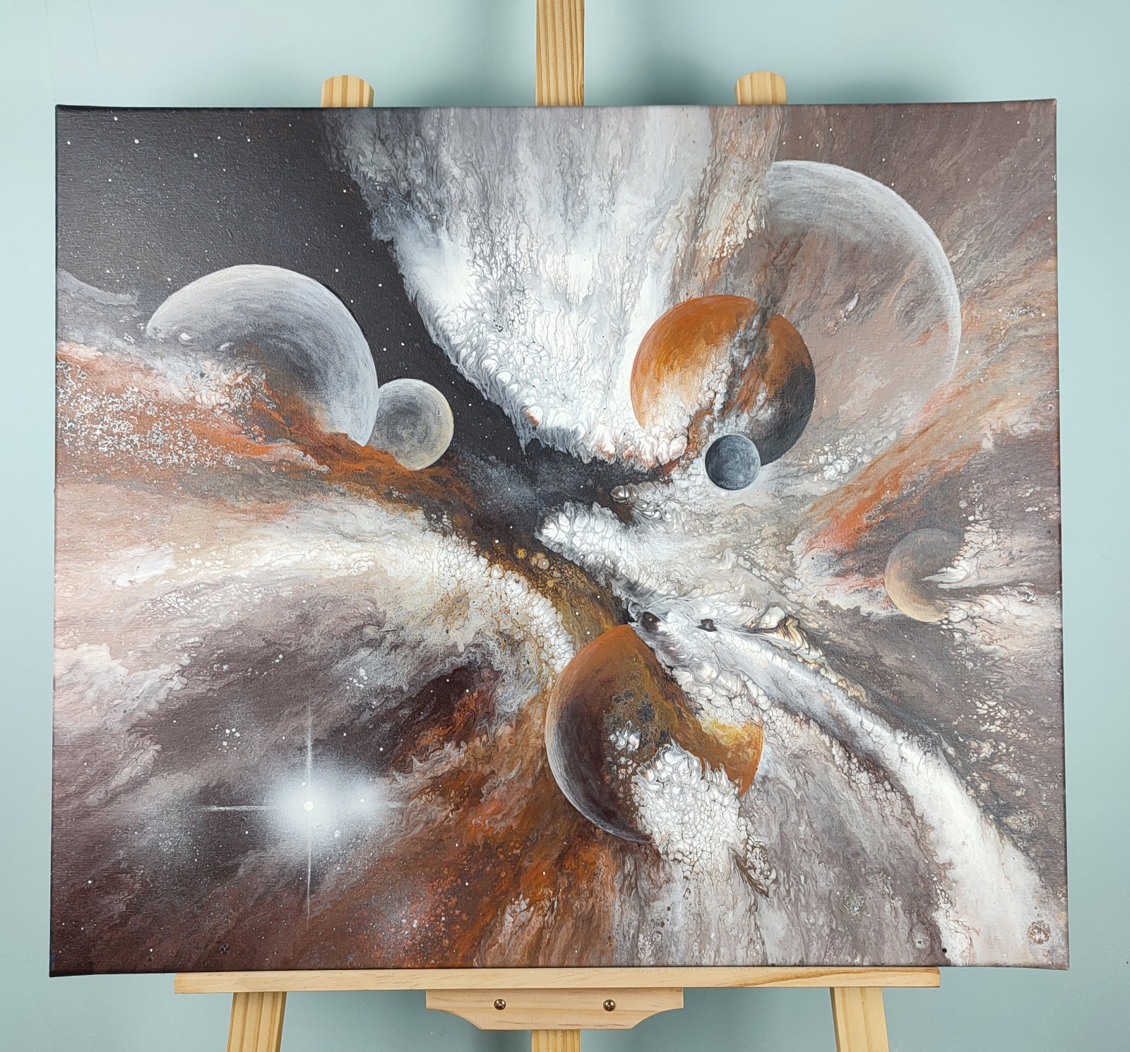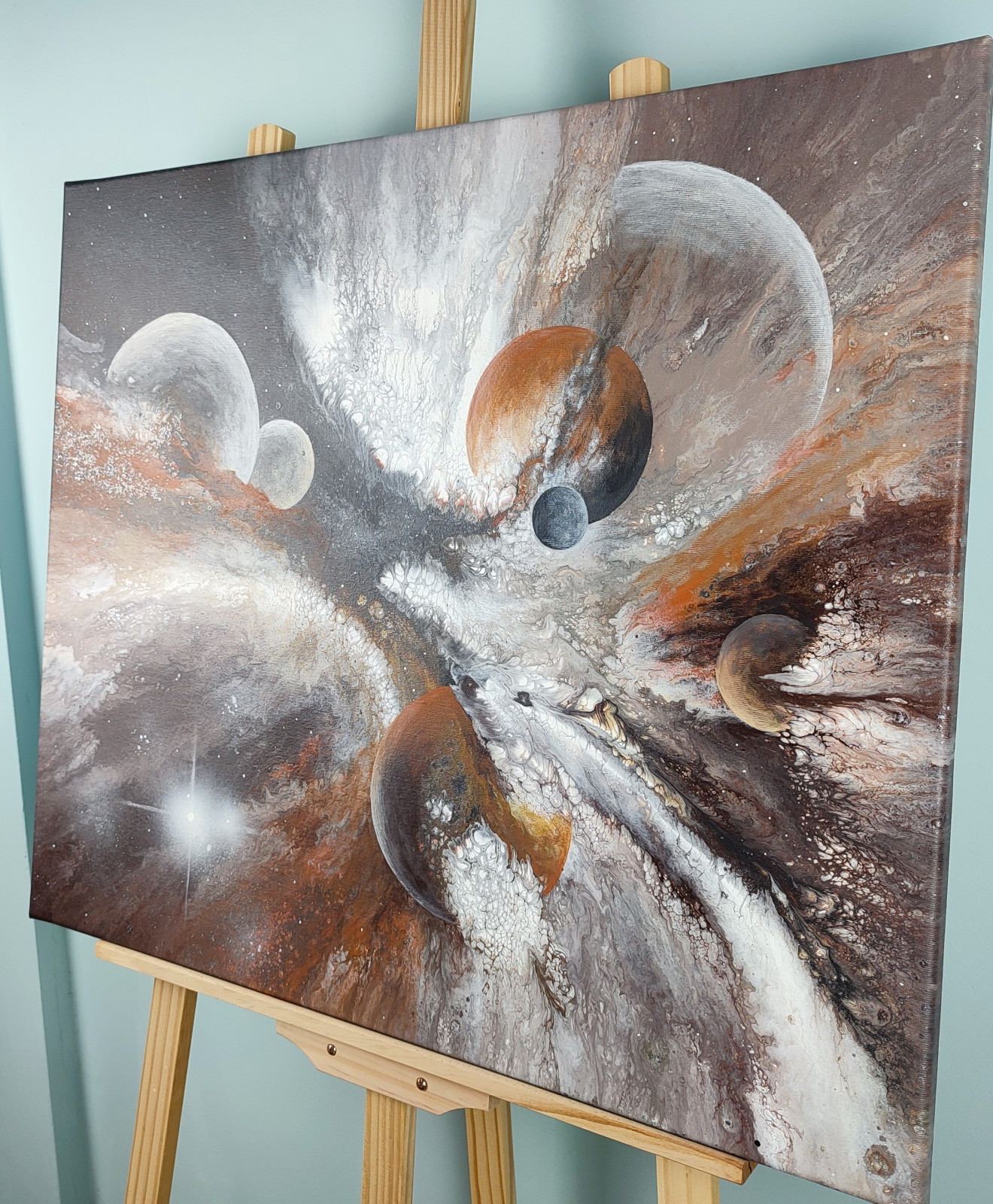Technika: akryl. Metoda pouringu - unikalna kompozycja, której nie da się ponownie odtworzyć.