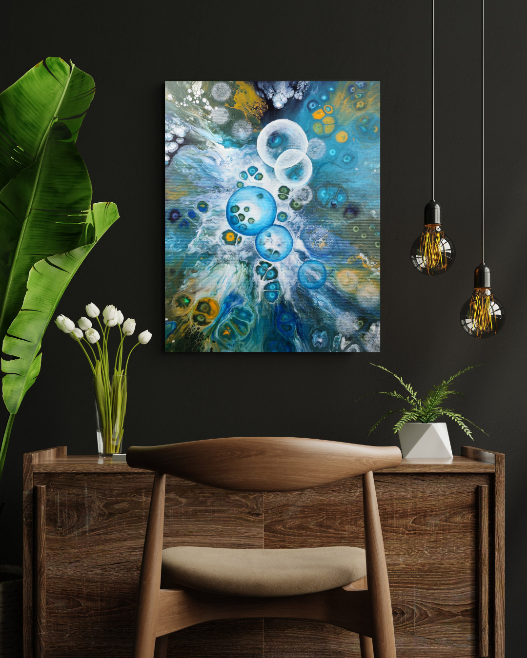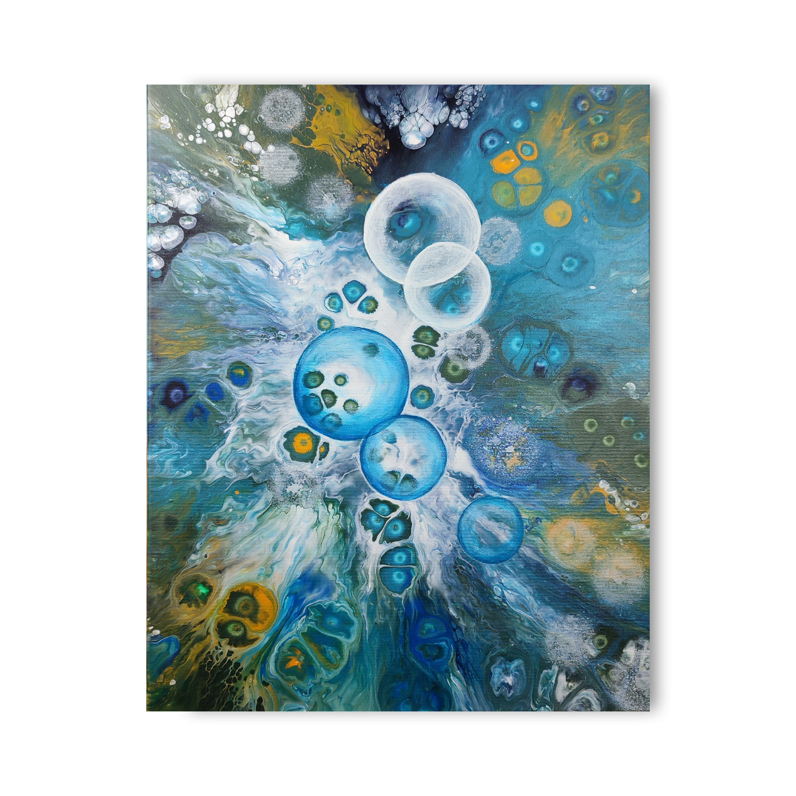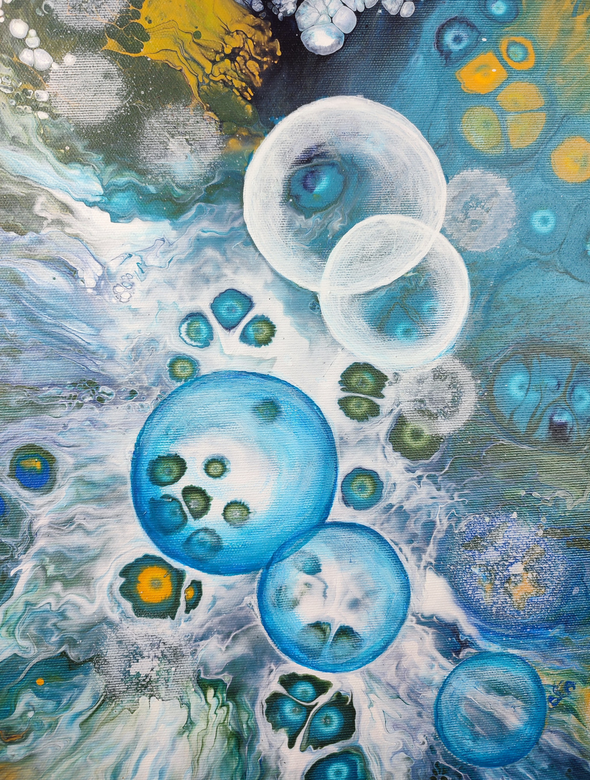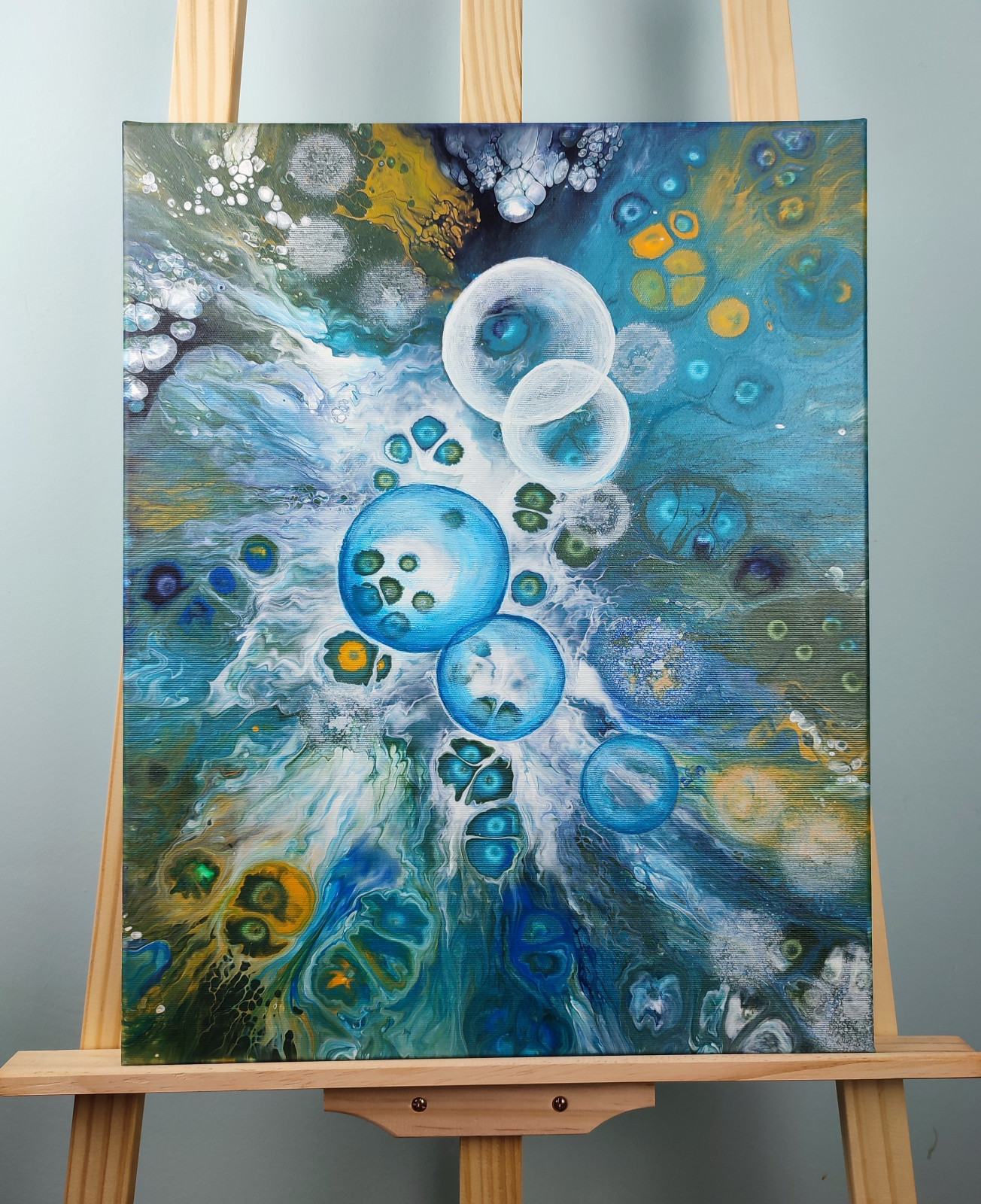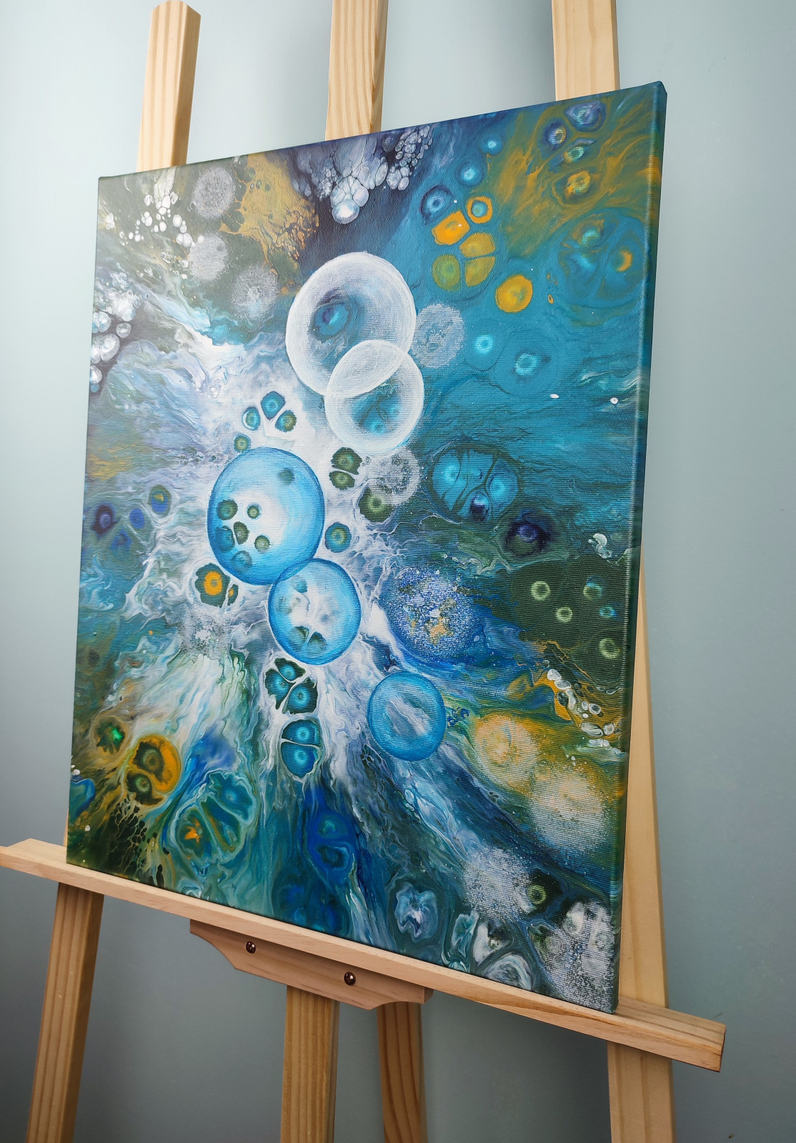 Technika: akryl. Metoda pouringu - unikalna kompozycja, której nie da się ponownie odtworzyć.
