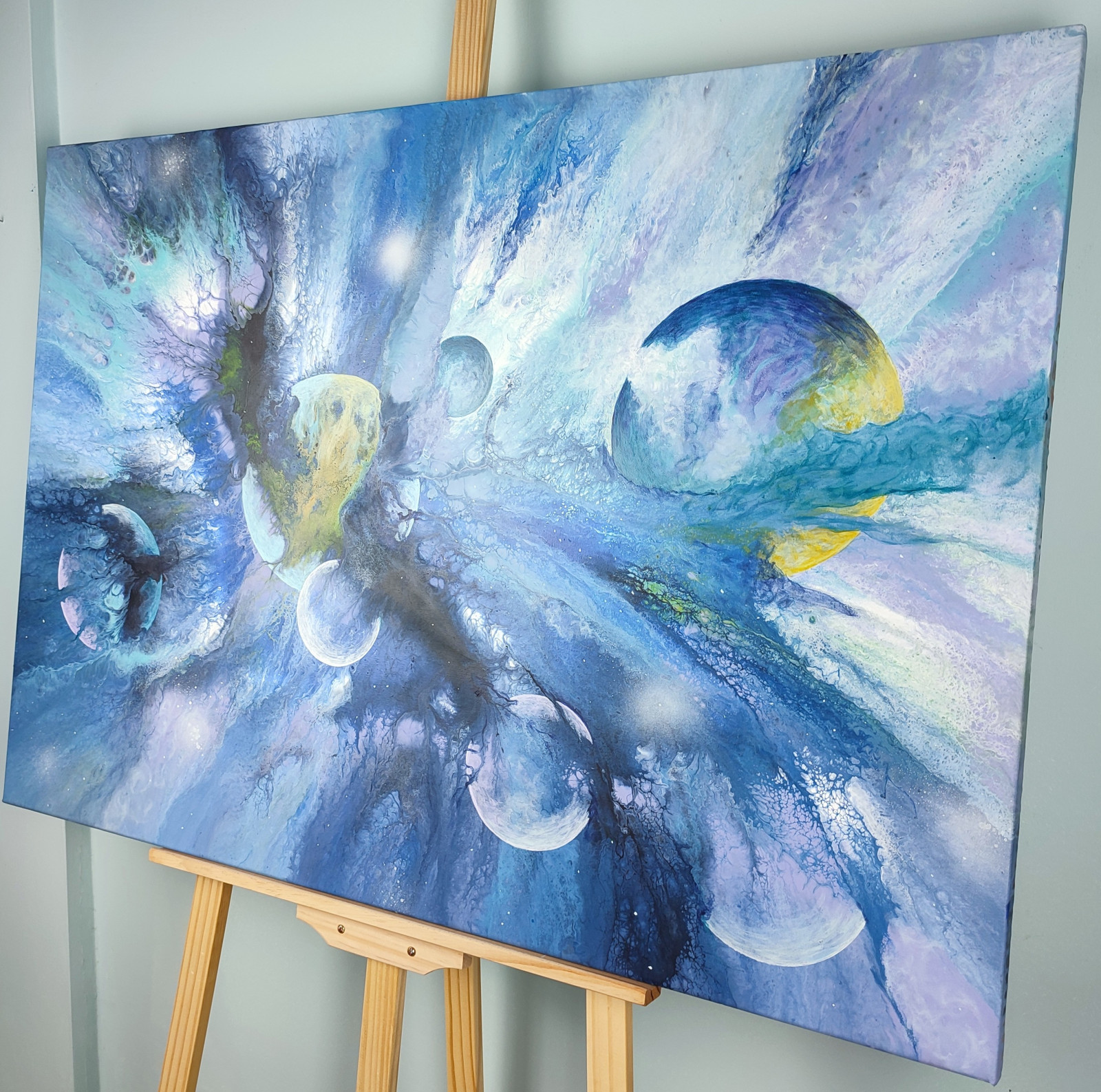 Technika: akryl. Metoda pouringu - unikalna kompozycja, której nie da się ponownie odtworzyć.