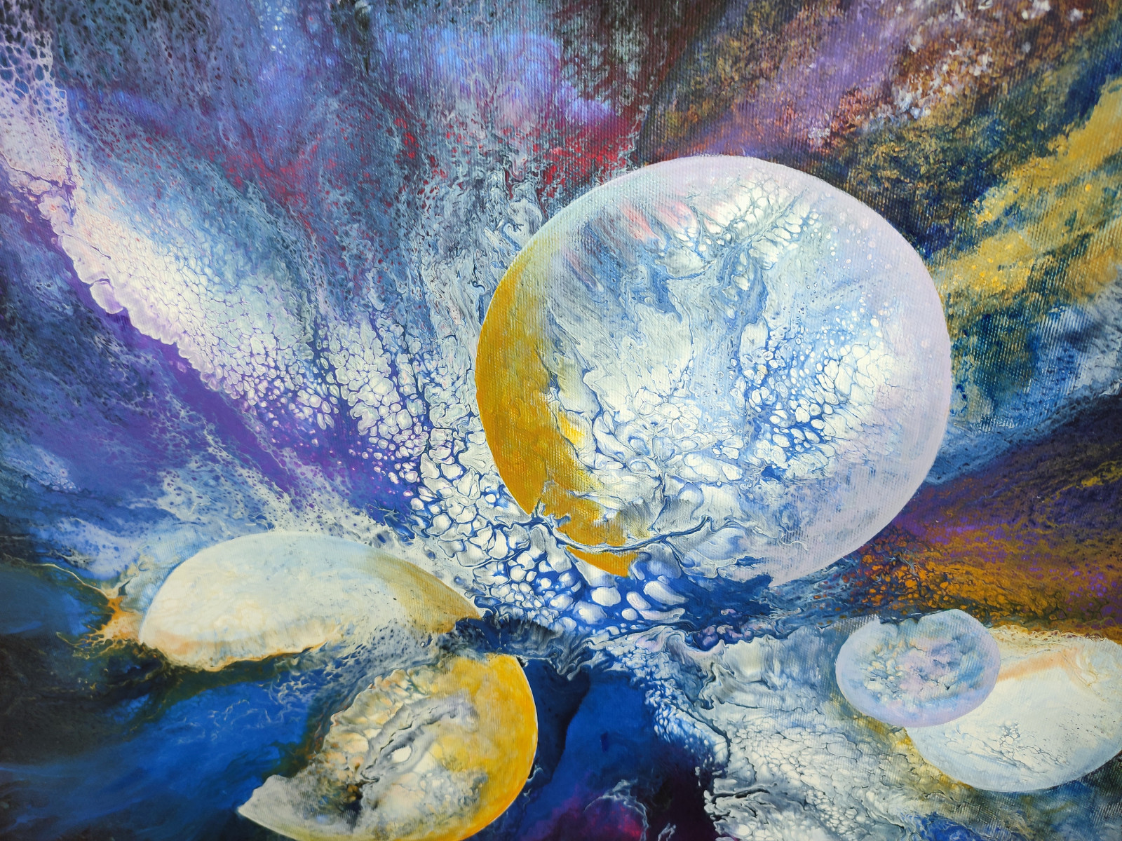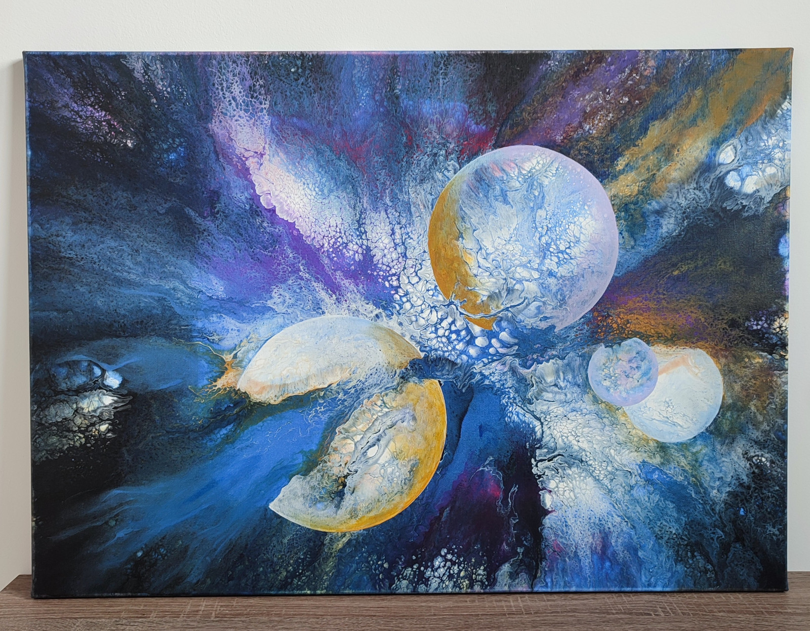 Technika: akryl. Metoda pouringu - unikalna kompozycja, której nie da się ponownie odtworzyć.