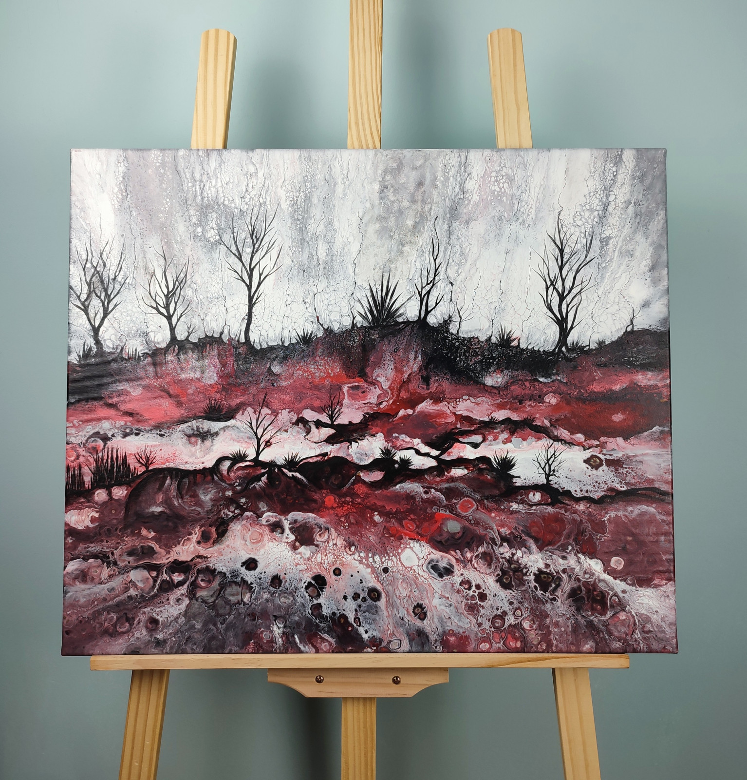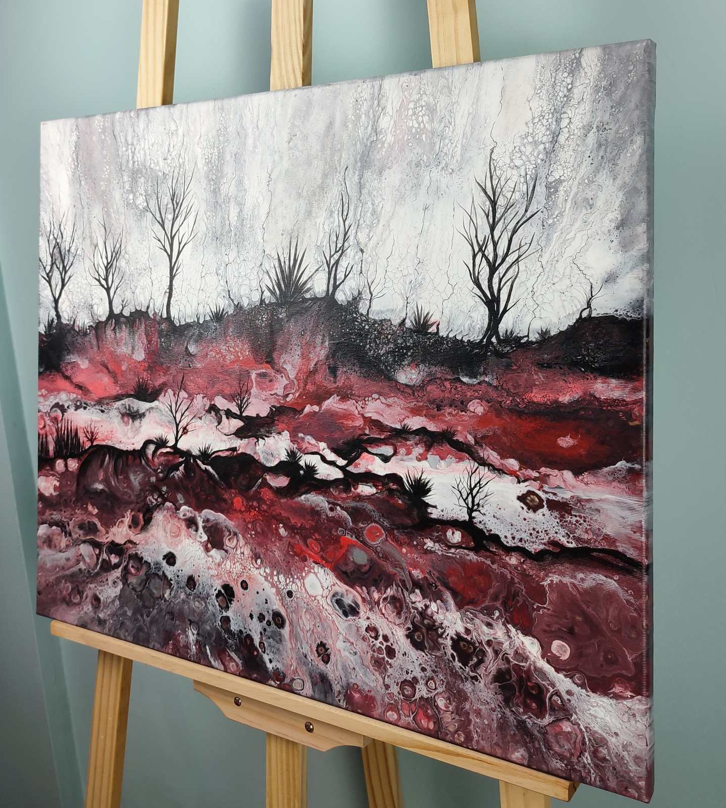 Technika: akryl. Metoda pouringu - unikalna kompozycja, której nie da się ponownie odtworzyć.