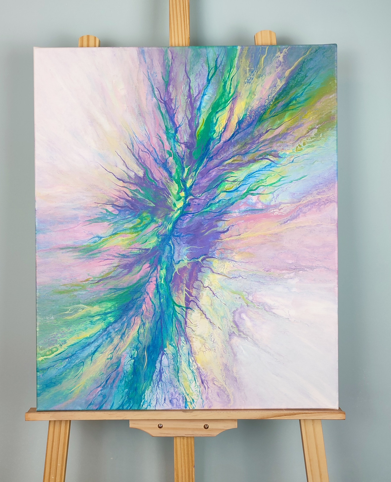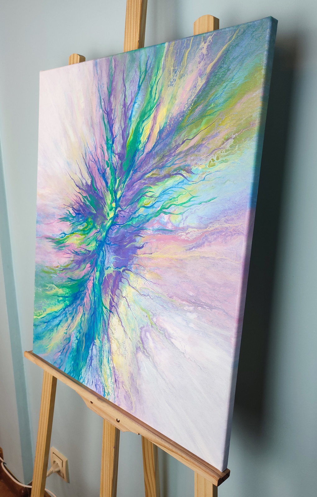 Technika: akryl. Metoda pouringu - unikalna kompozycja, której nie da się ponownie odtworzyć.