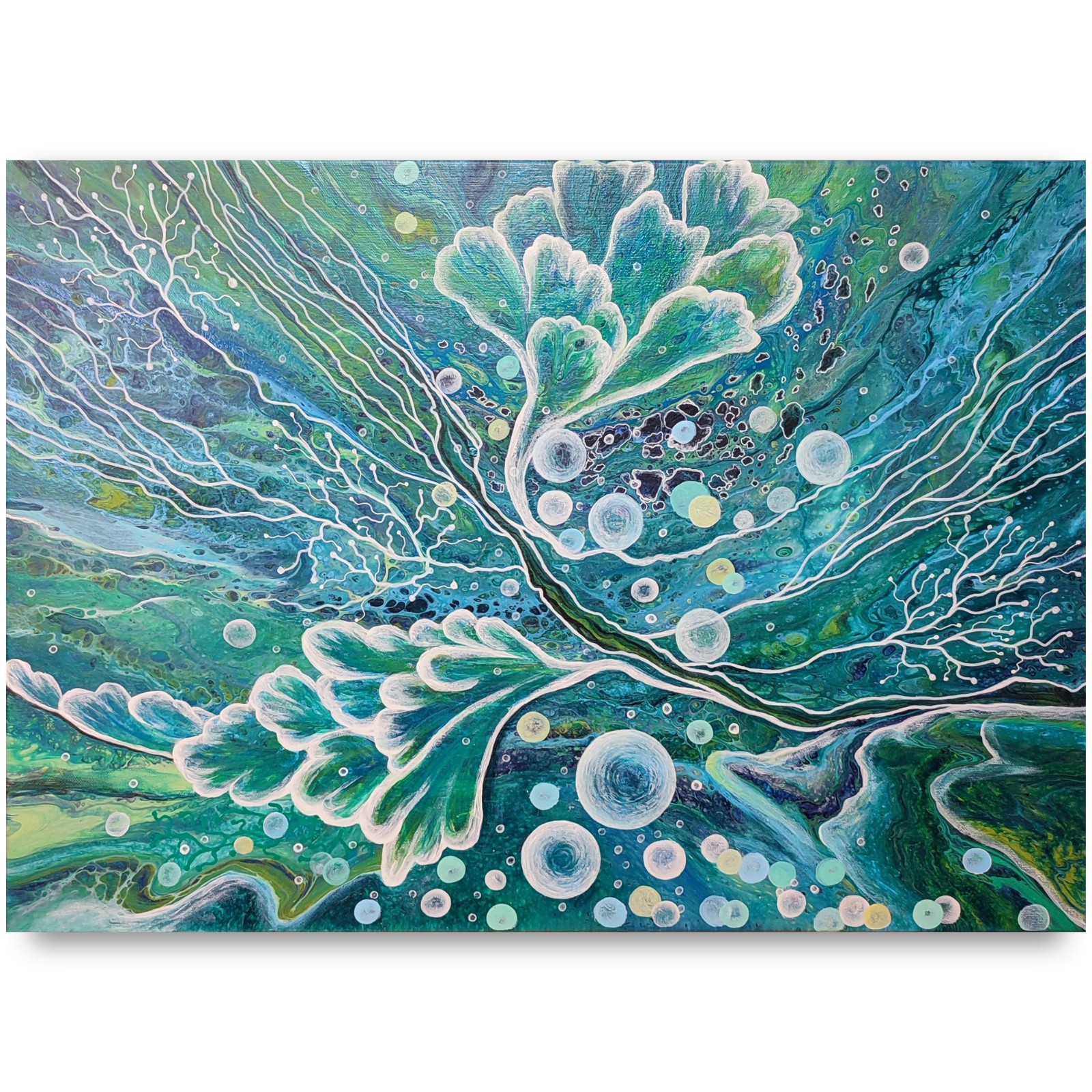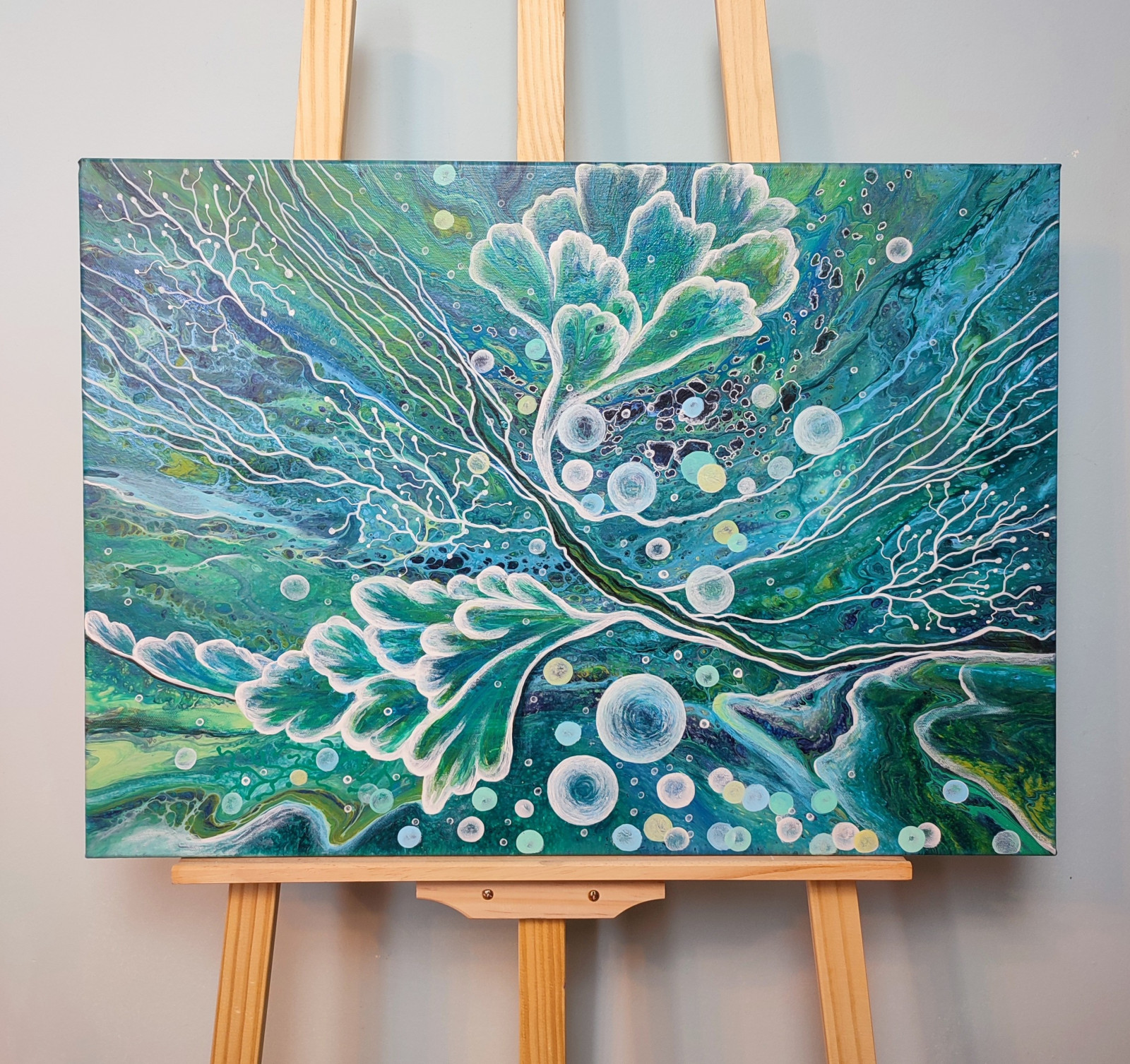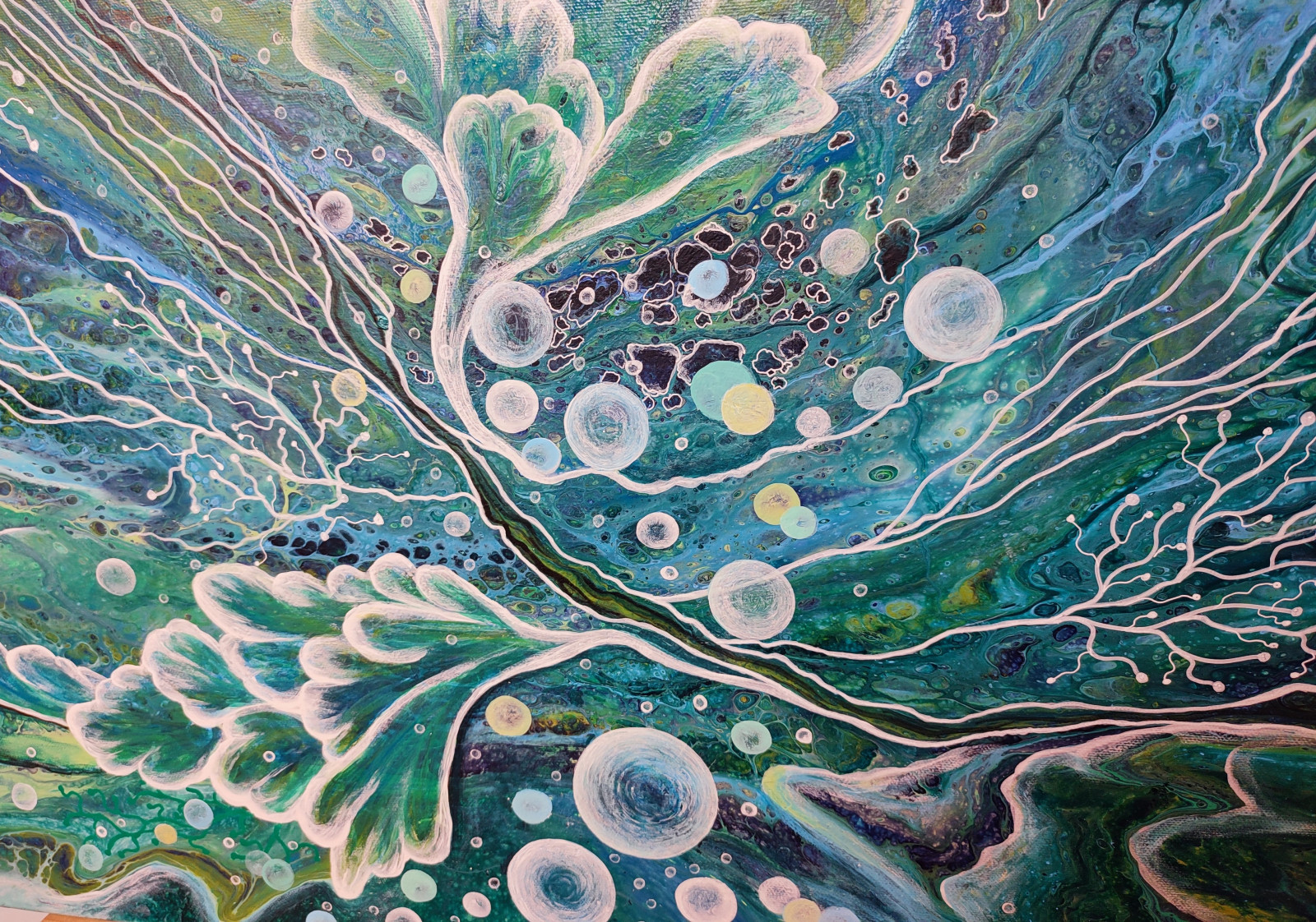 Technika: akryl. Metoda pouringu - unikalna kompozycja, której nie da się ponownie odtworzyć.