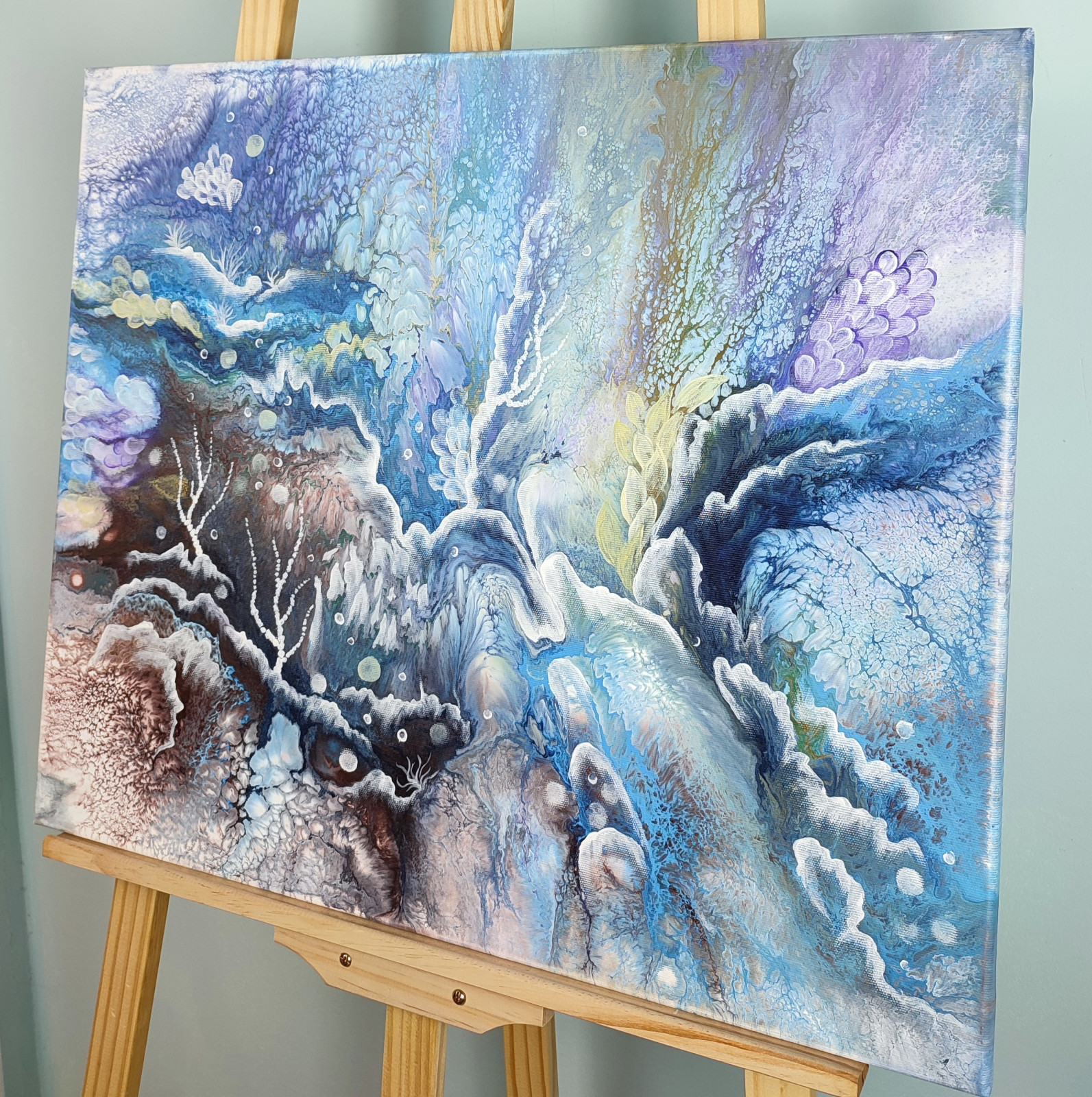 Technika: akryl. Metoda pouringu - unikalna kompozycja, której nie da się ponownie odtworzyć.