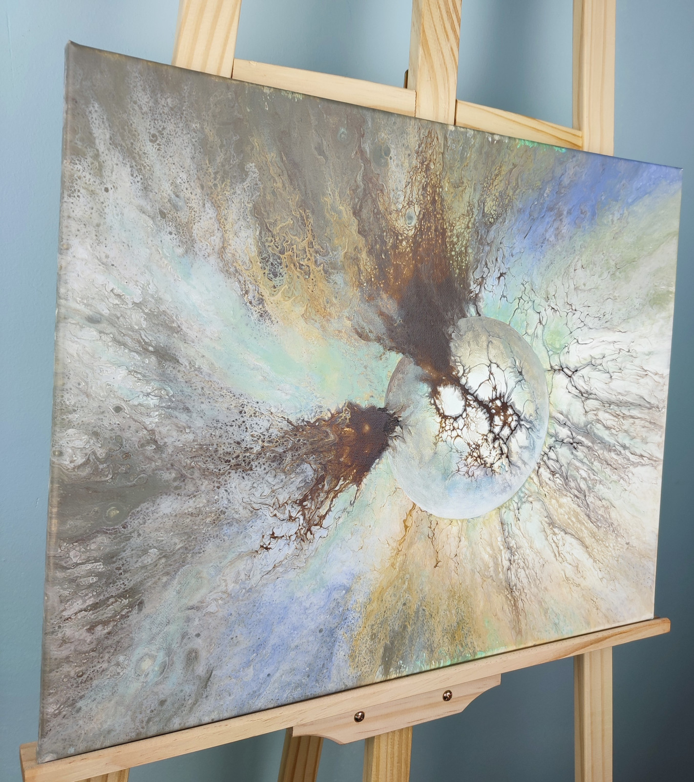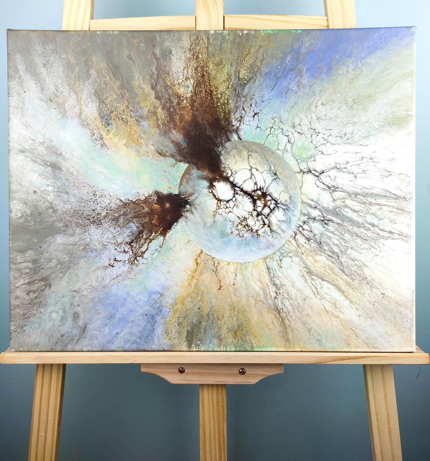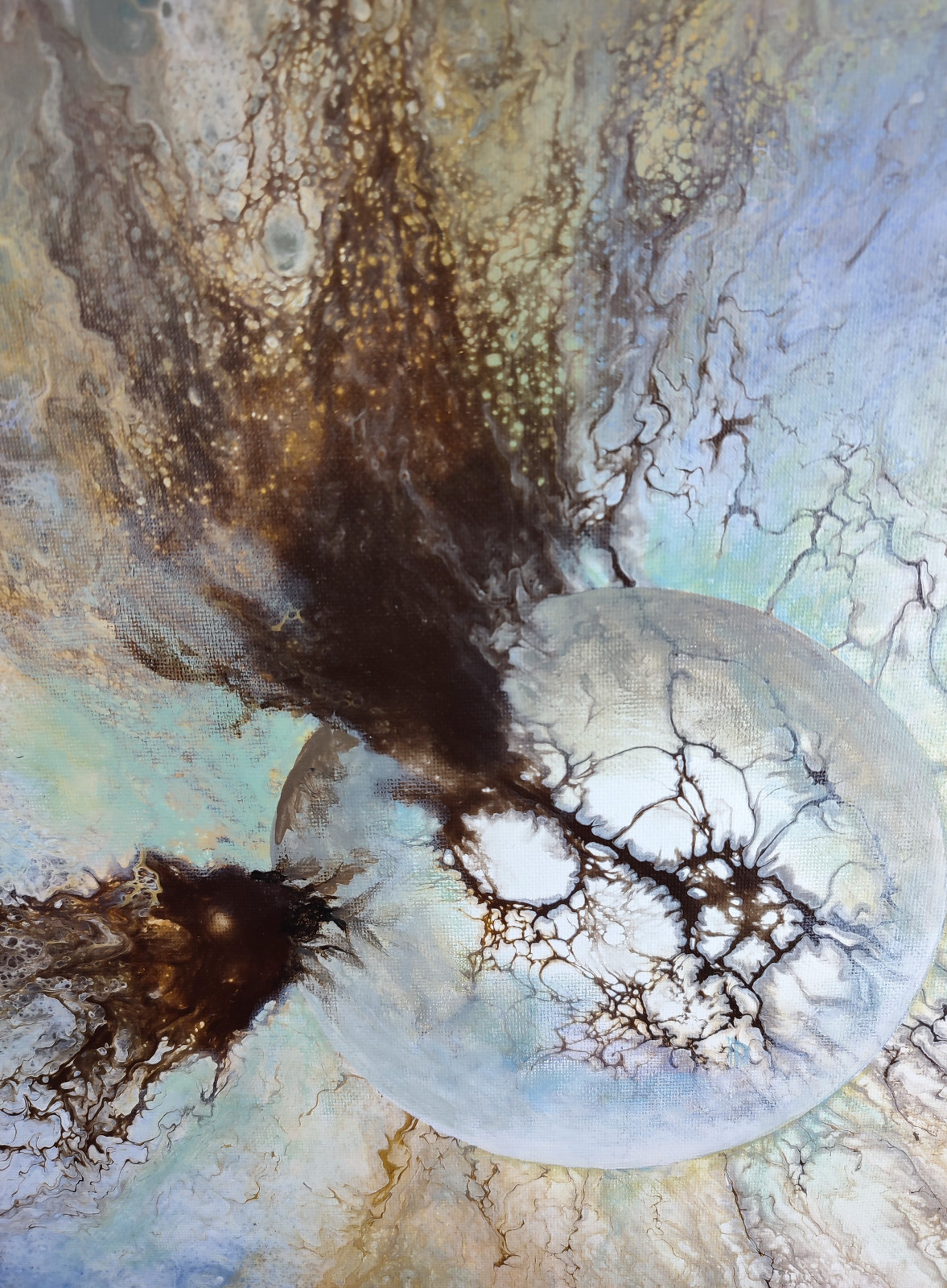 Technika: akryl. Metoda pouringu - unikalna kompozycja, której nie da się ponownie odtworzyć.