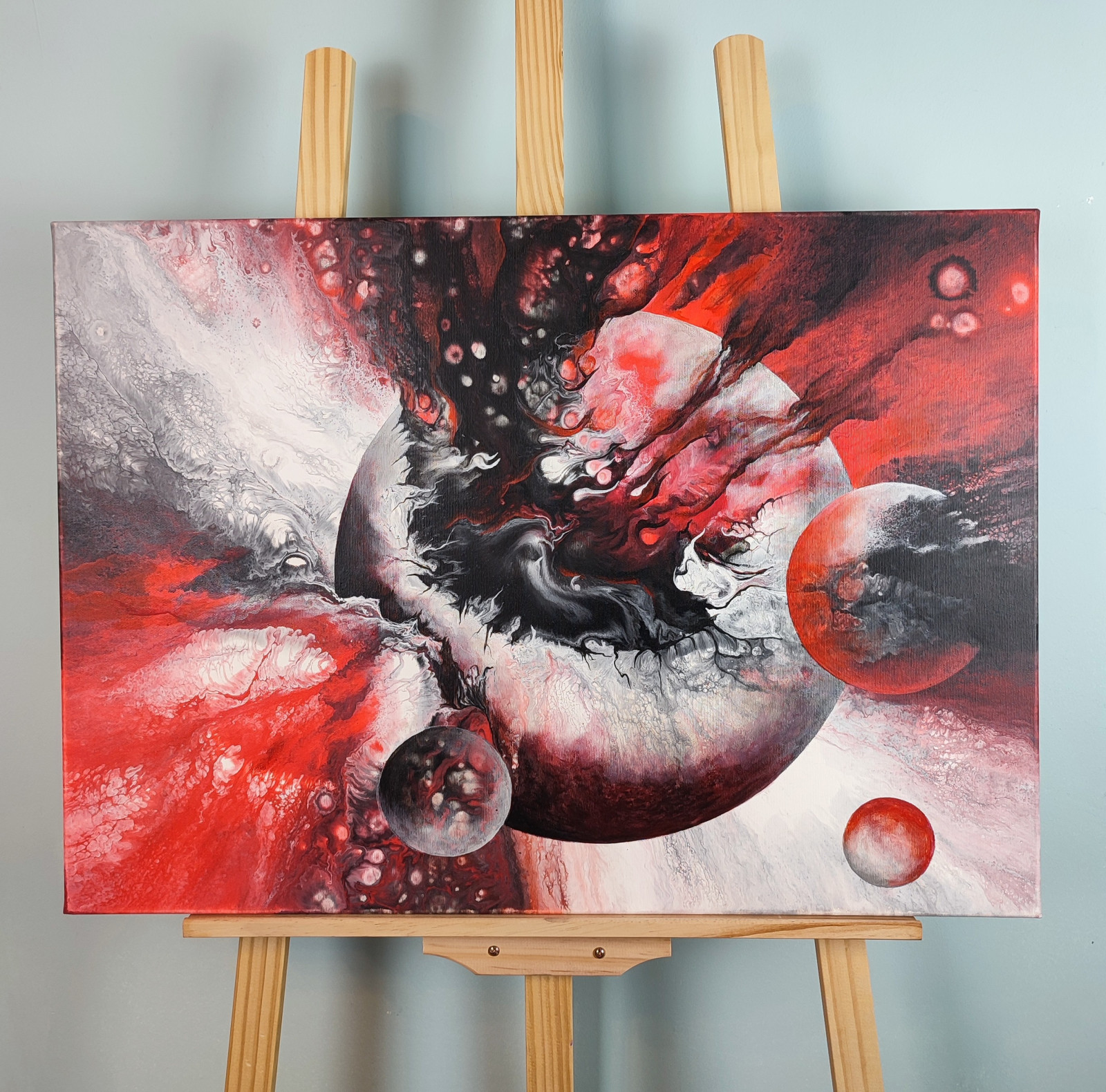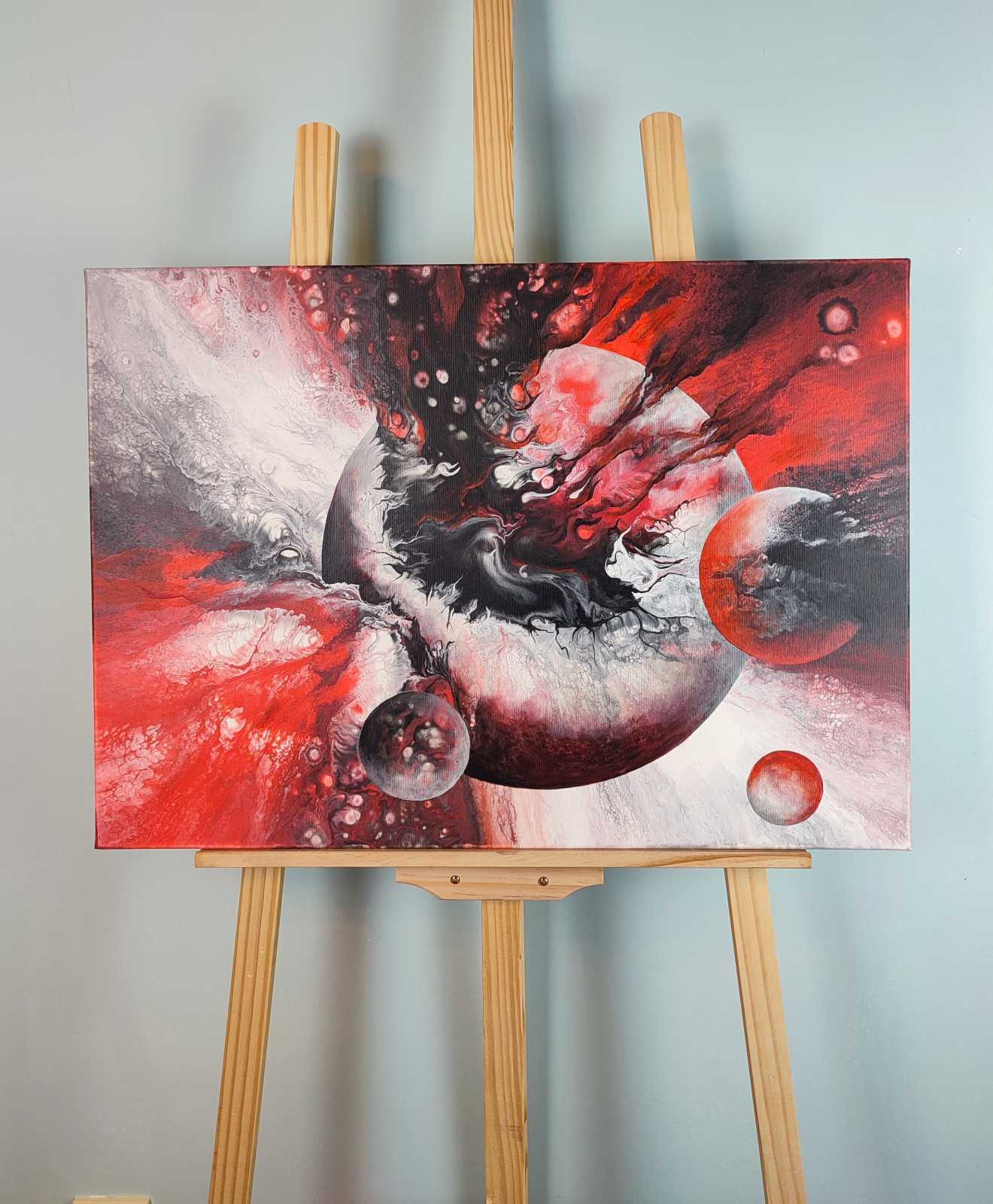 Technika: akryl. Metoda pouringu - unikalna kompozycja, której nie da się ponownie odtworzyć.