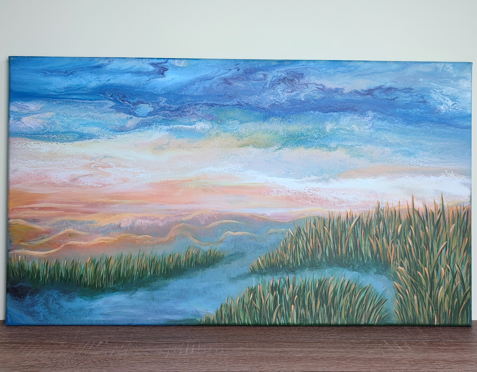 Świt nad mokradłami - Krajobraz, akryl na płótnie 40x70
