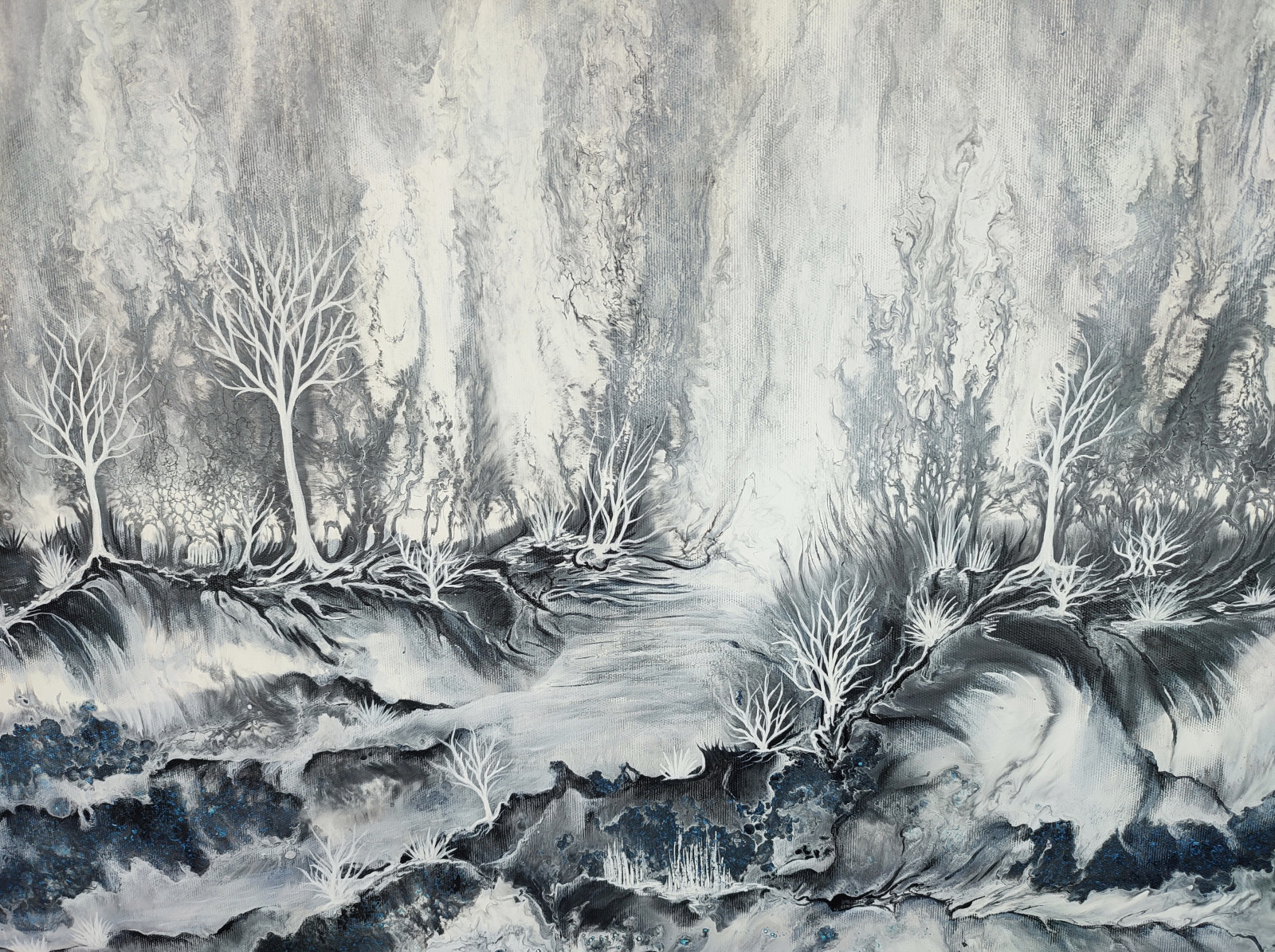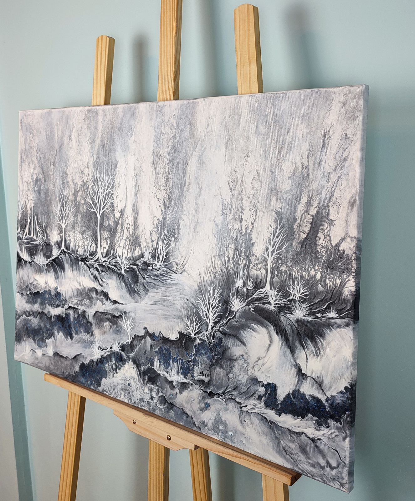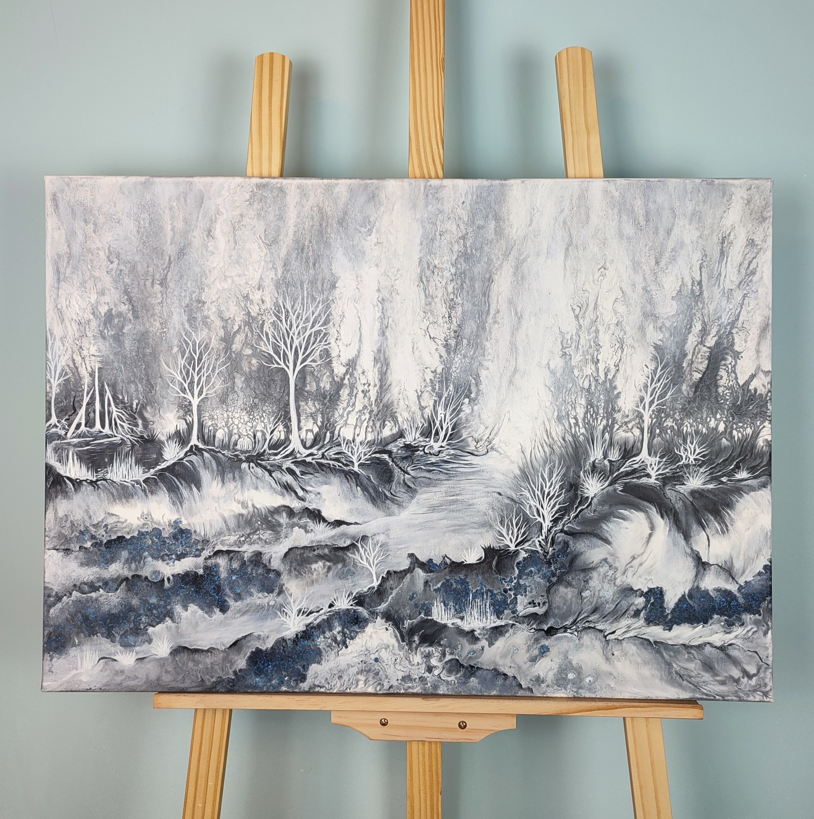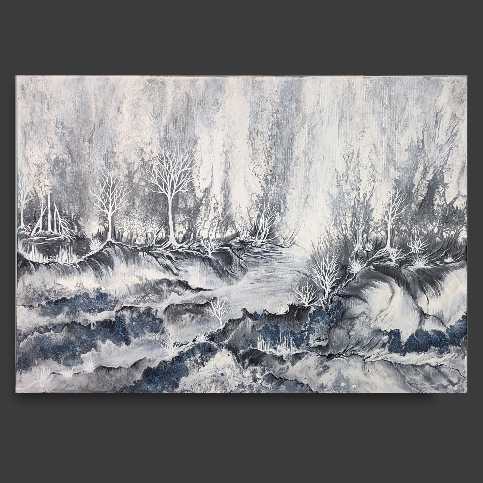 Technika: akryl. Metoda pouringu - unikalna kompozycja, której nie da się ponownie odtworzyć. Plus malarstwo tradycyjne.
