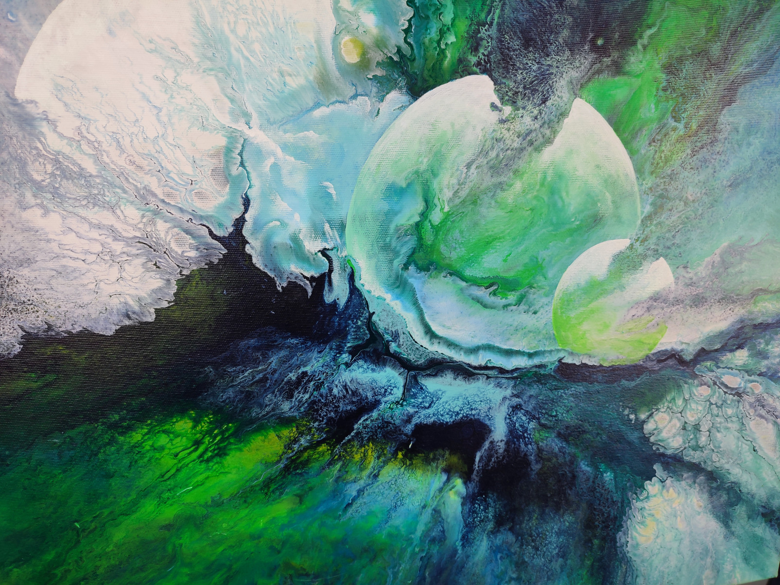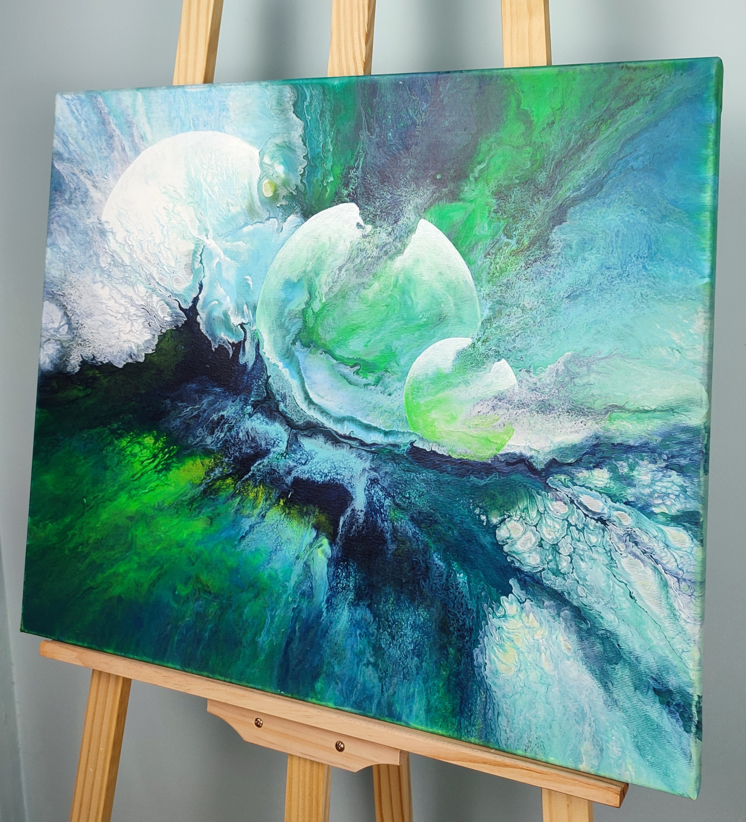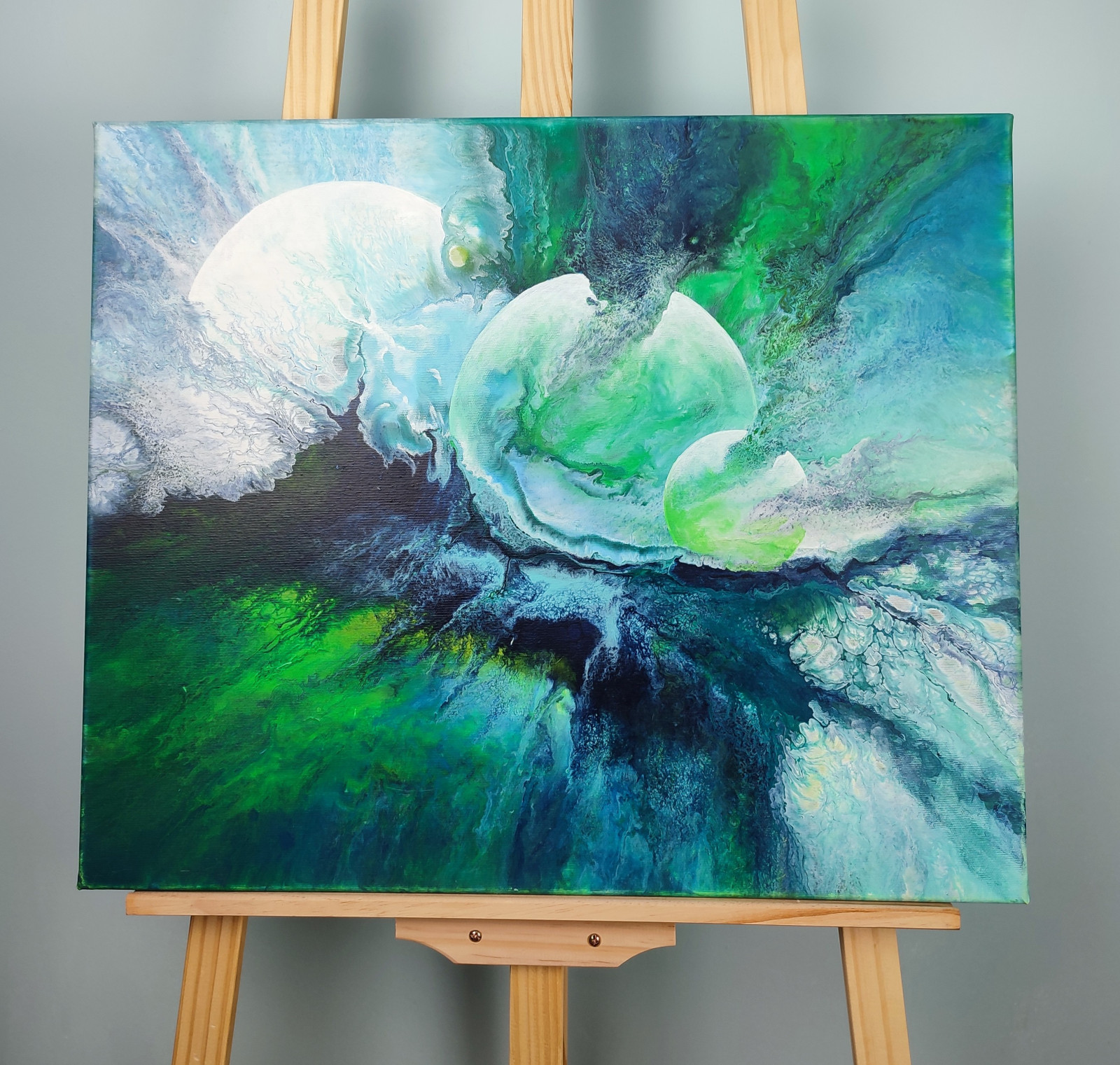 Technika: akryl. Metoda pouringu - unikalna kompozycja, której nie da się ponownie odtworzyć.