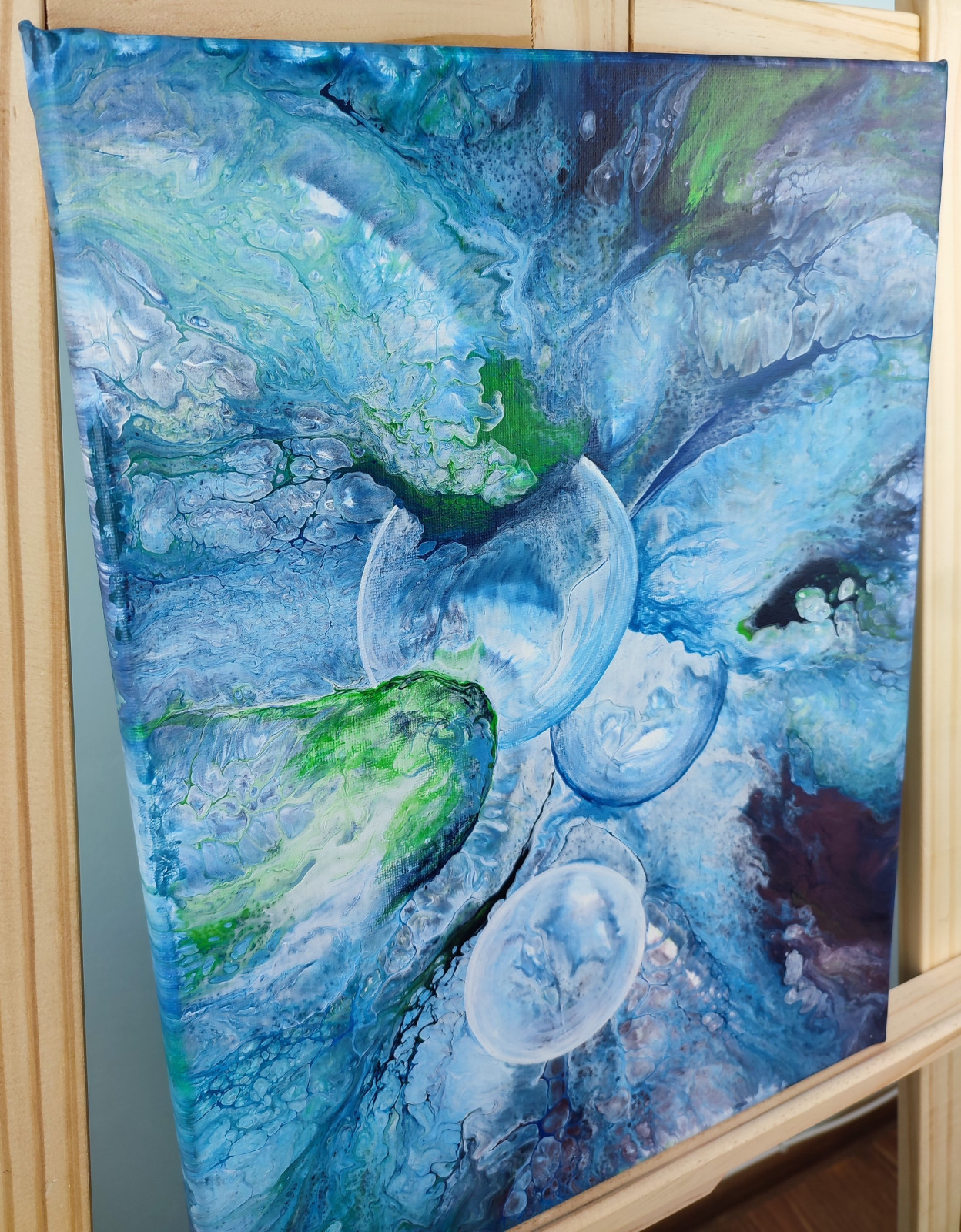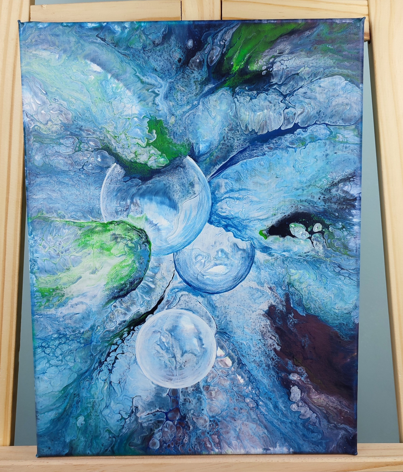 Technika: akryl. Metoda pouringu - unikalna kompozycja, której nie da się ponownie odtworzyć.