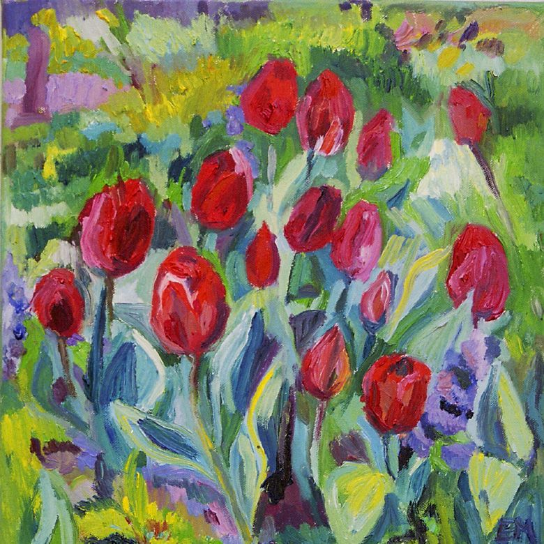 obraz olejny 40x40, malowany z natury, podobrazie płócienne, boki pomalowane w kolorze obrazu