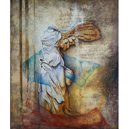 Tematyka zawsze pozostawia wolność interpretacji, jednak dla autorki Nike z Samotraki ma szczególne znaczenie, zwłaszcza towarzysząca posągowi pierwsza strofa Marsylianki, którą Artystka ręcznie pędzlem napisała na obrazie.