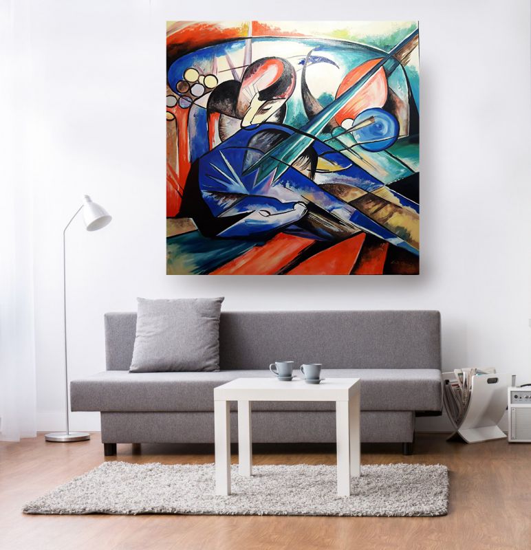 Duży, kolorowy obraz do salonu. 90x90cm, Malarstwo nowoczesne. Modna kolorystyka, turkus, czerń, granat, błękit, czerwień - niektóre kolory bardzo intensywne. Możliwe zamówienie wielkiego gabarytu obrazu w adekwatnej cenie :)