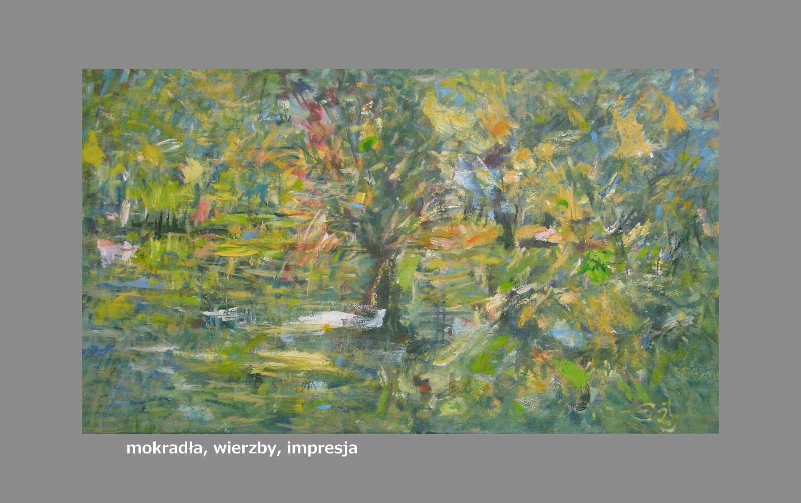 Mokradła, wierzby, impresja, 100x60 cm