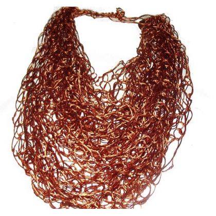 Niezwykle oryginalny, designerski naszyjnik - szal,naszyjnik wykonany z delikatnej ,lejącej sie nici w miedzianym kolorze