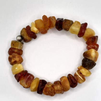 Oferujemy bransoletę z własnoręcznie zbieranego w okolicy Mikoszewa naturalnego bursztynu bałtyckiego (każdy wie, że najlepsze właściwości energizujące ma bursztyn niemodyfikowany, poddany obróbce bez użycia środków chemicznych, past polerskich i stosowania autoklawów).