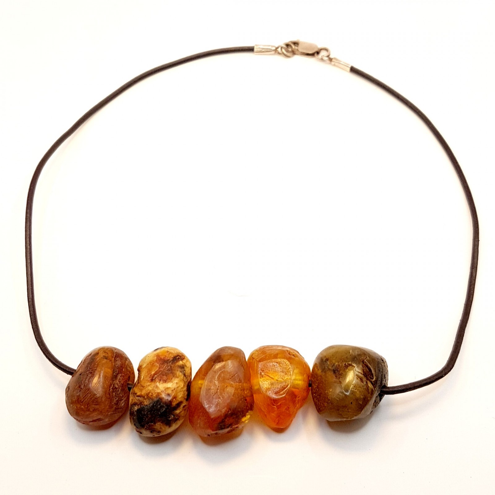 Oferujemy naszyjnik wykonany w stylu ECO z własnoręcznie zbieranego w okolicy Mikoszewa naturalnego bursztynu bałtyckiego (każdy wie, że najlepsze właściwości energizujące ma bursztyn niemodyfikowany, poddany obróbce bez użycia środków chemicznych, past polerskich i stosowania autoklawów).