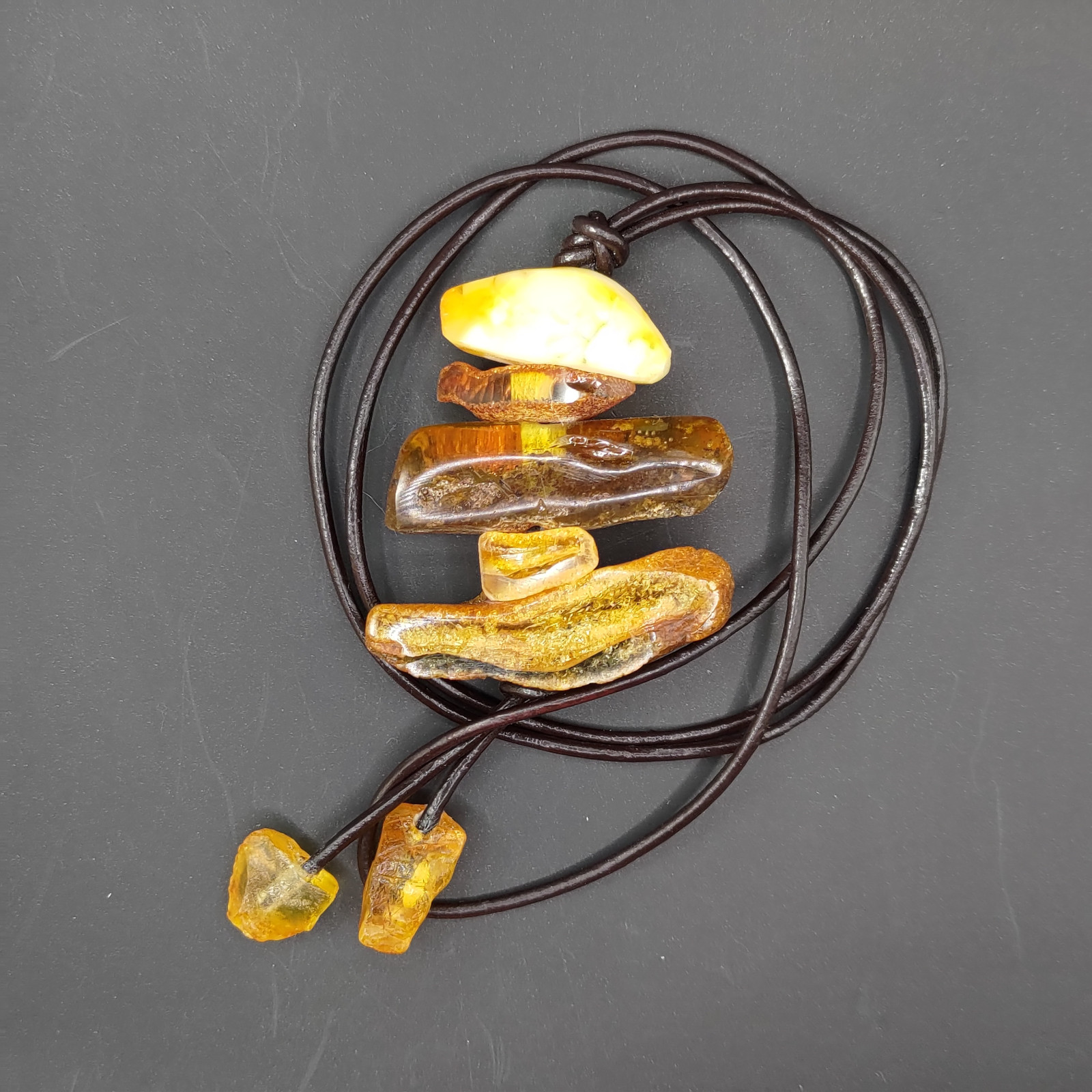 Naszyjnik eko w stylu rustykalnym. Bursztyn bałtycki zbierany własnoręcznie na Mierzei Wiślanej, szlifowany ręcznie bez pasty polerskiej. Każda bryłka ma zachowany swój pierwotny kształt i korę bursztynową dla zachowania pozytywnych właściwości. Bursztyn w naszyjniku dobierany jest w różnych odcieniach dla ukazania jego piękna i różnorodności. Naszyjnik niepowtarzalny, choć niewymuskany i bardzo naturalny, przyniesie szczęście i przyciągnie pozytywna energię.