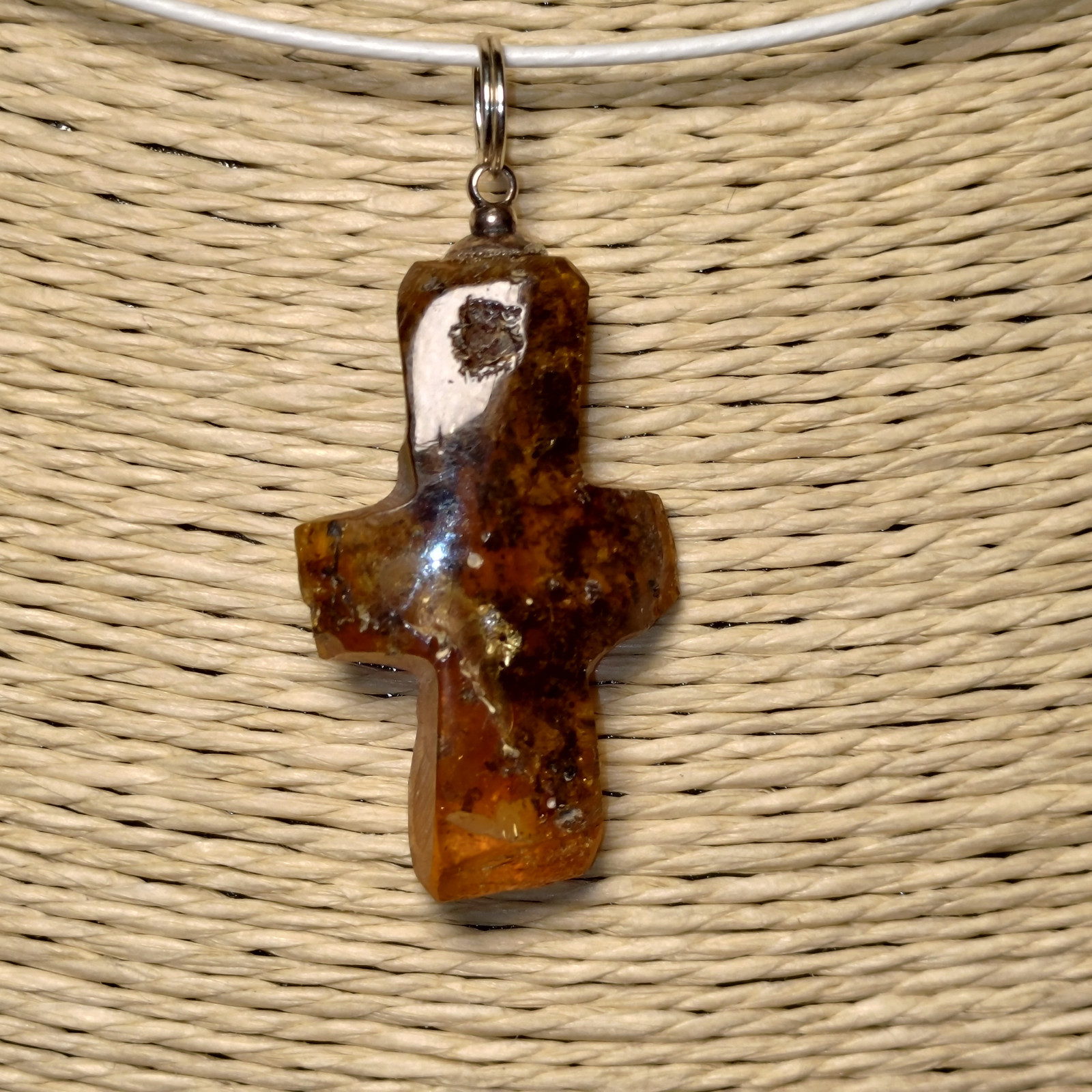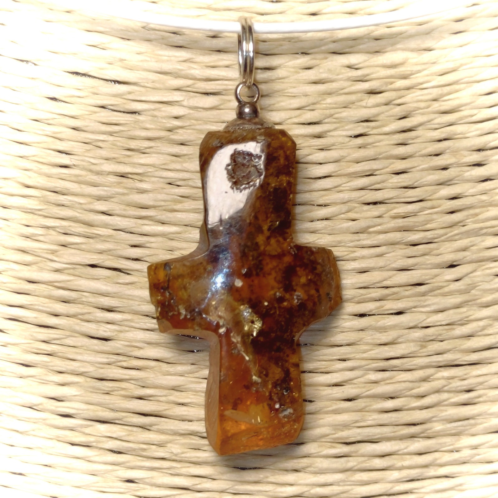 Zawieszka, krzyżyk z bursztynu w stylu ECO