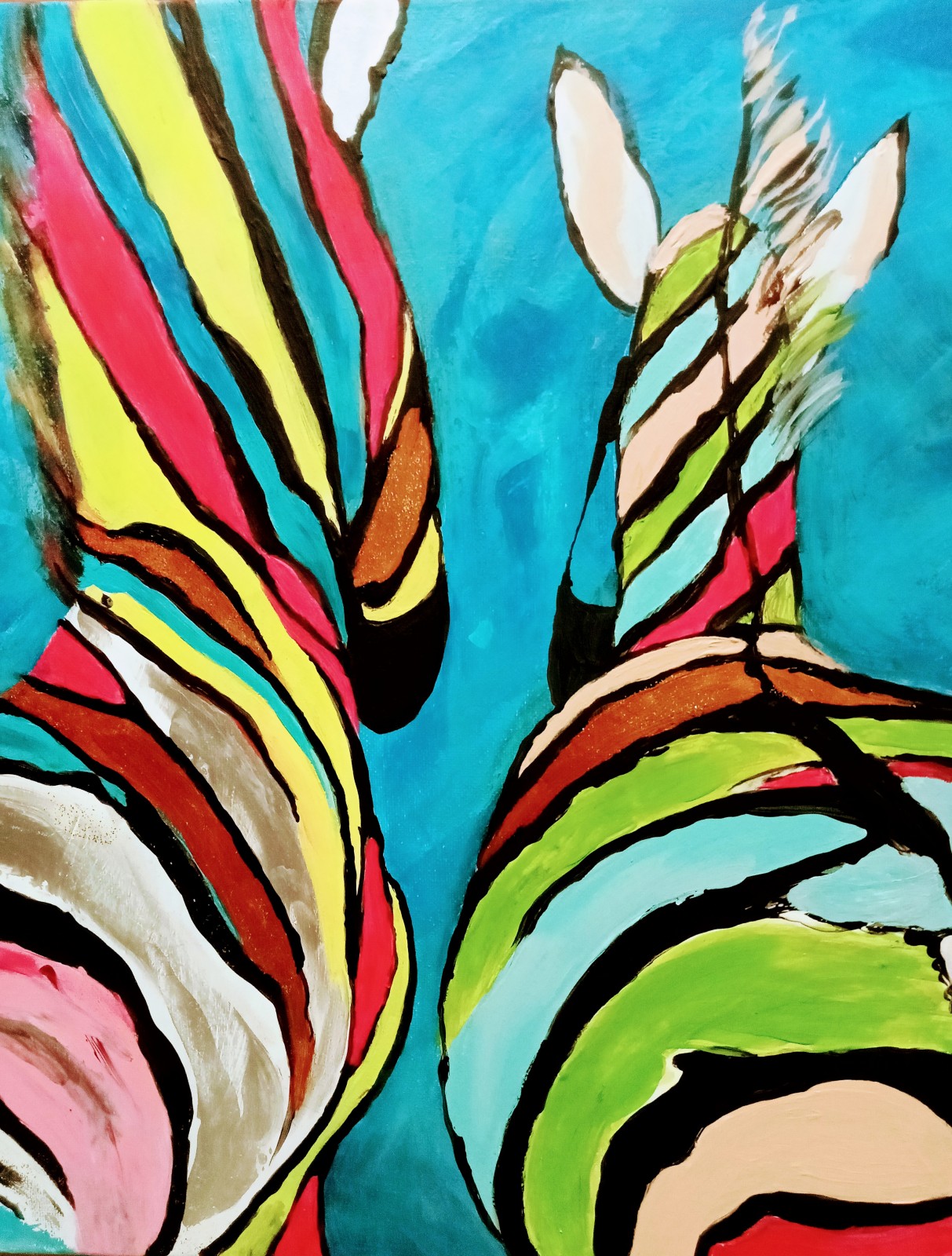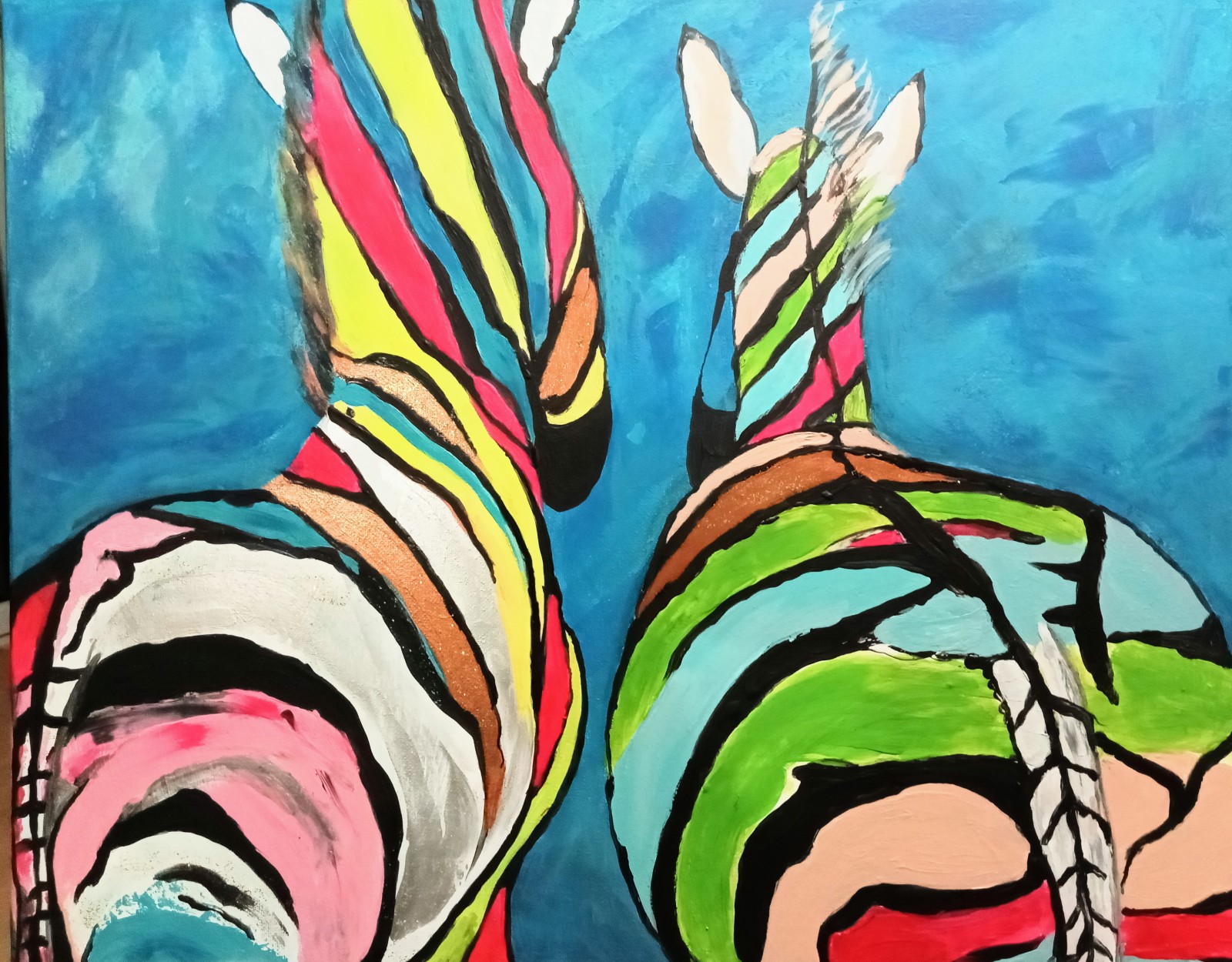 Obraz ręcznie malowany na płótnie naciągniętym na sosnowy blejtram.