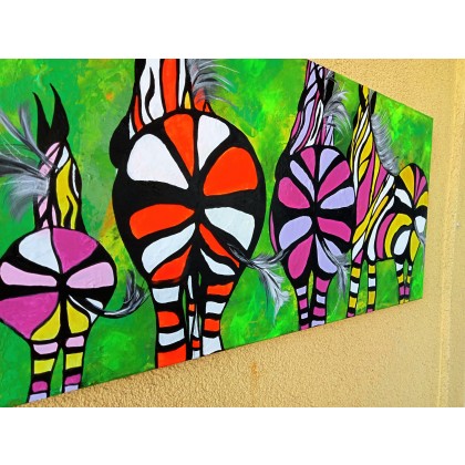 Obraz ręcznie malowany na płótnie naciągniętym na sosnowy blejtram.