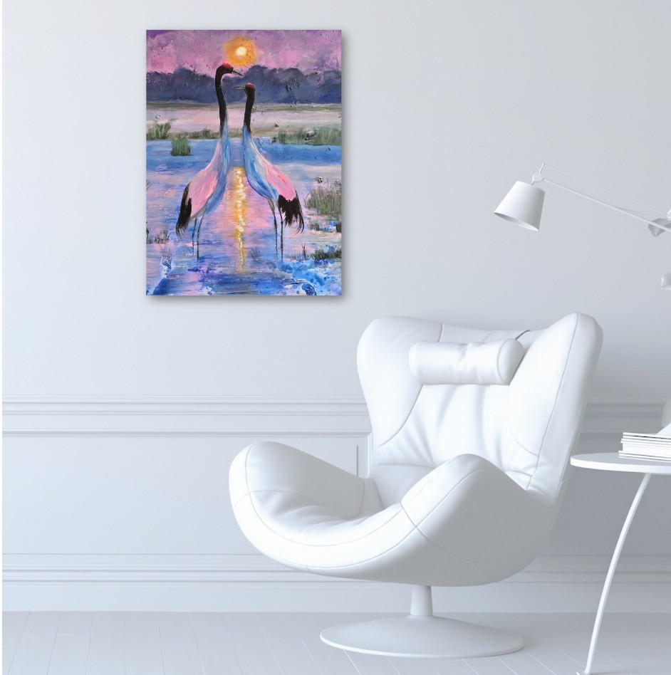 Obraz akrylowy ręcznie malowany na płótnie naciągniętym na bjetram drewniany.
