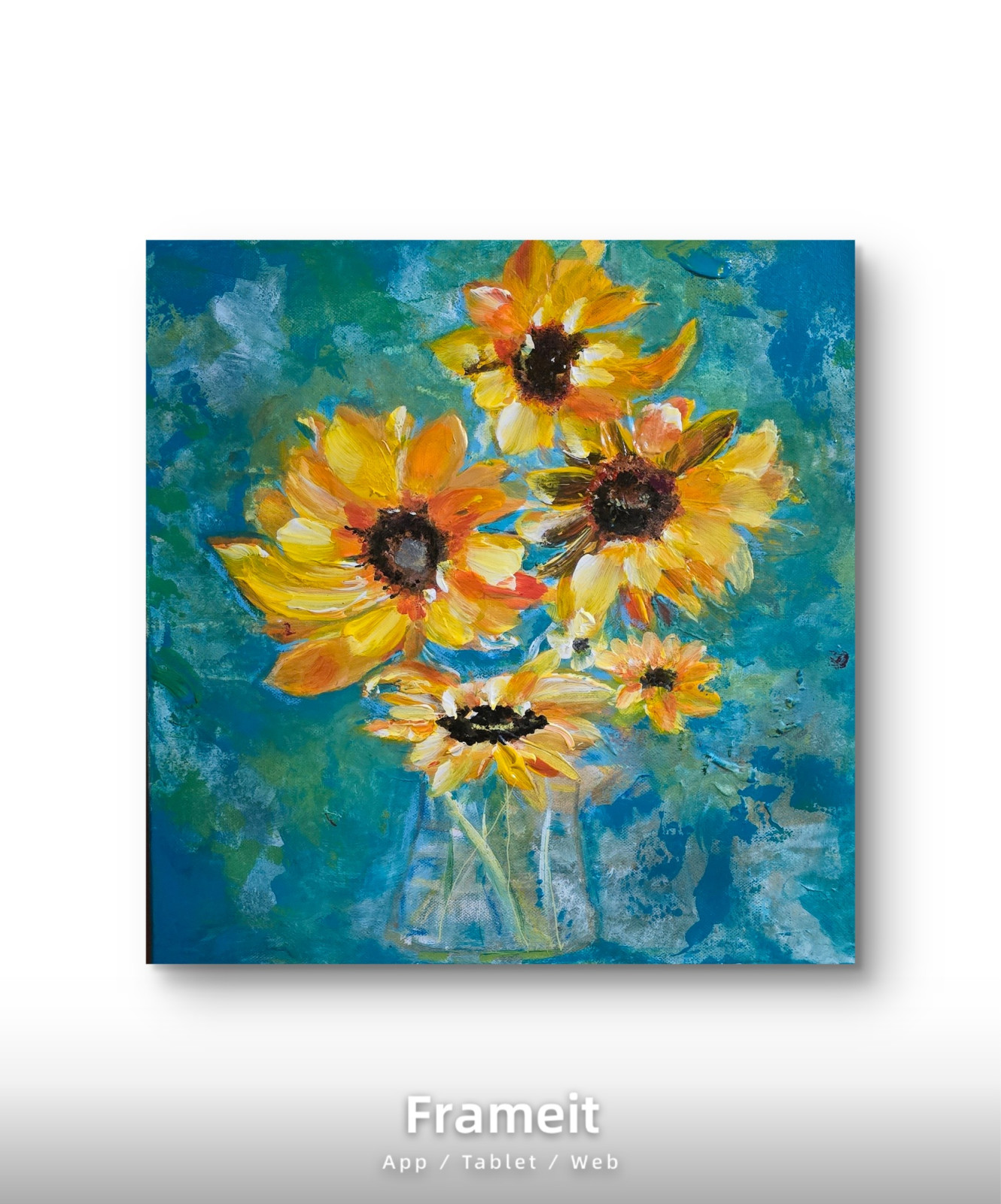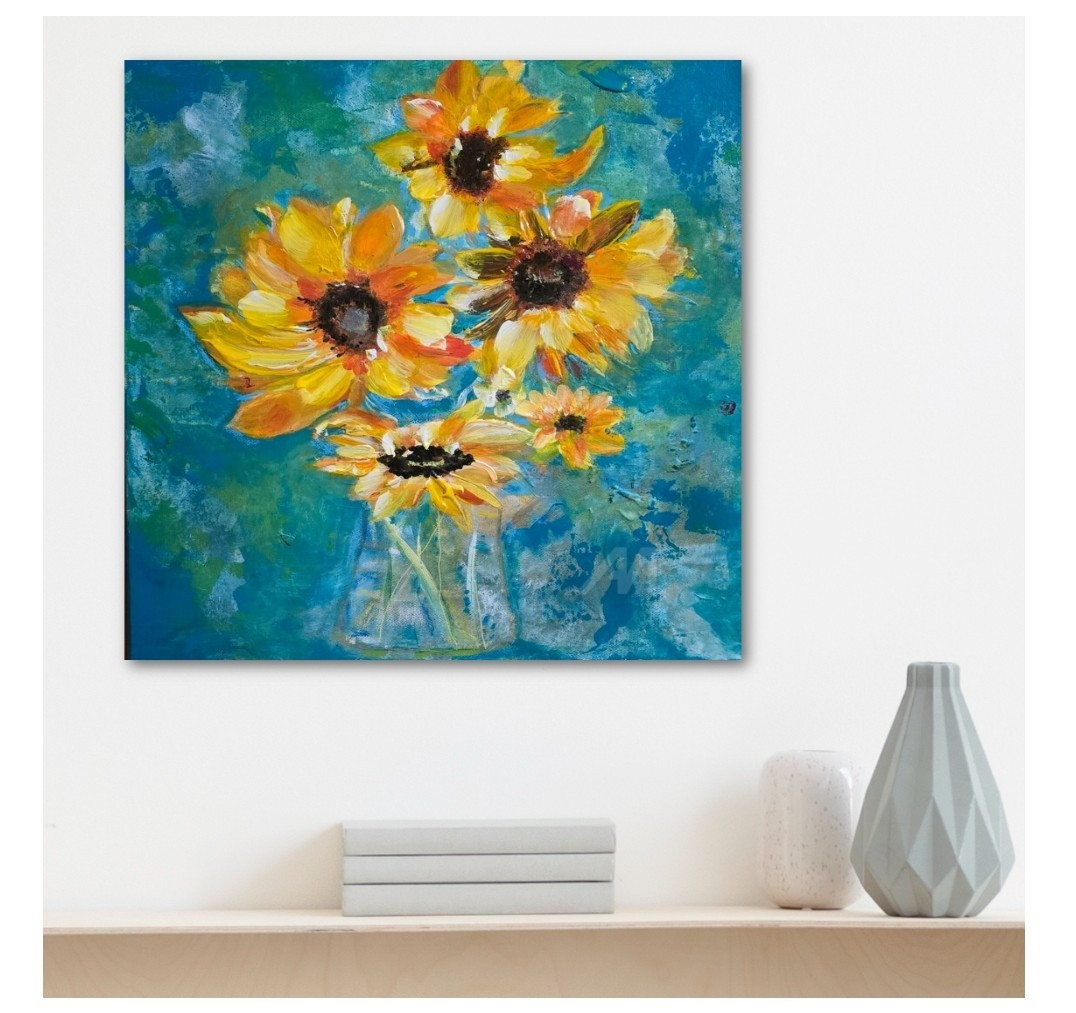 Boki pomalowane w kolorze obrazu, obraz jest gotowy do powieszenia na ścianie.