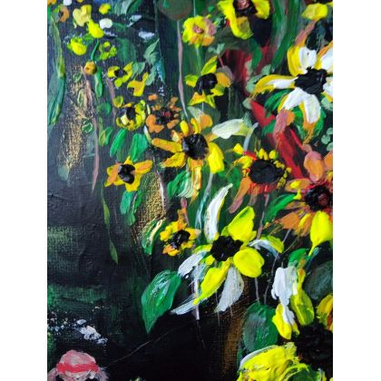Obraz ręcznie malowany na płótnie naciągniętym na sosnowy blejtram. Farby wysokiej jakości.