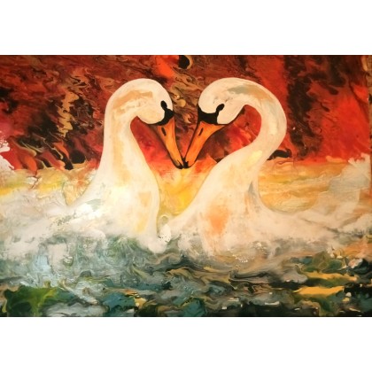 Obraz ręcznie malowany na płótnie naciągniętym na sosnowy blejtram.
