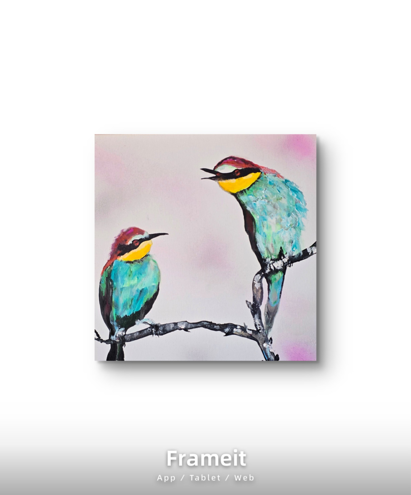 Boki pomalowane w kolorze obrazu, obraz jest gotowy do powieszenia na ścianie.