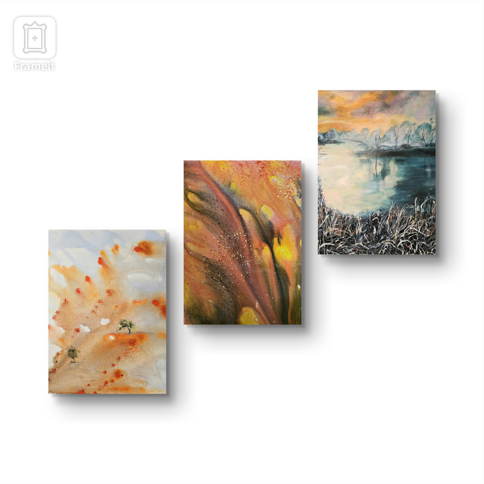 Kompozycja 3 prac na płótnie/Namibia i motion, heaven