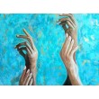 Obraz o tematyce delikatnej, subtelnej nawiązującej do ukazywania uczuć przez niewerbalność - dotyk.