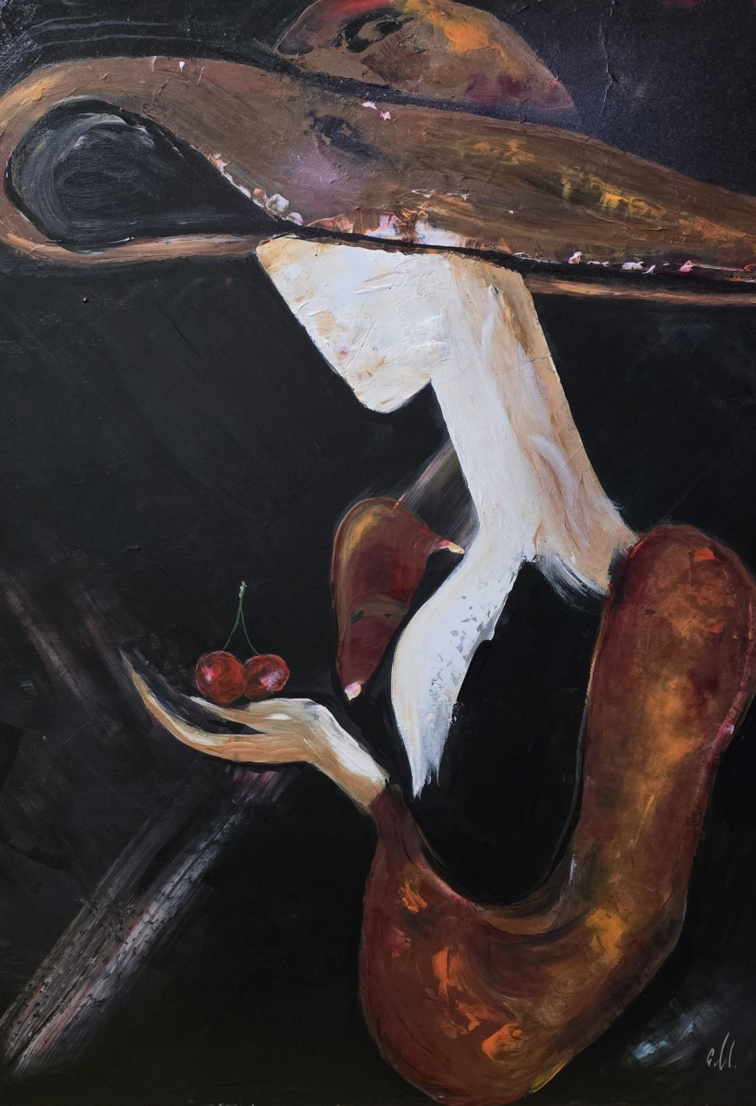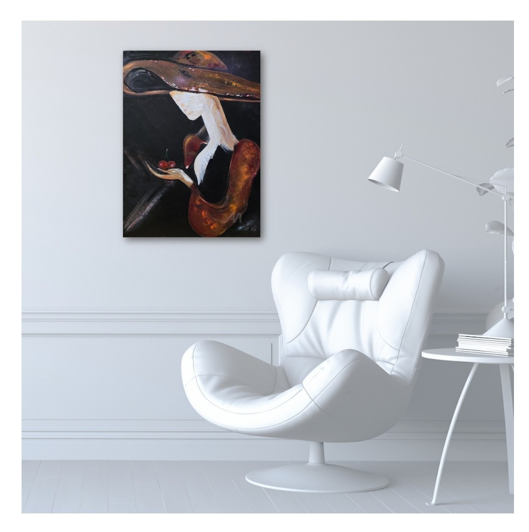 Obraz ręcznie malowany na płótnie naciągniętym na sosnowy blejtram.