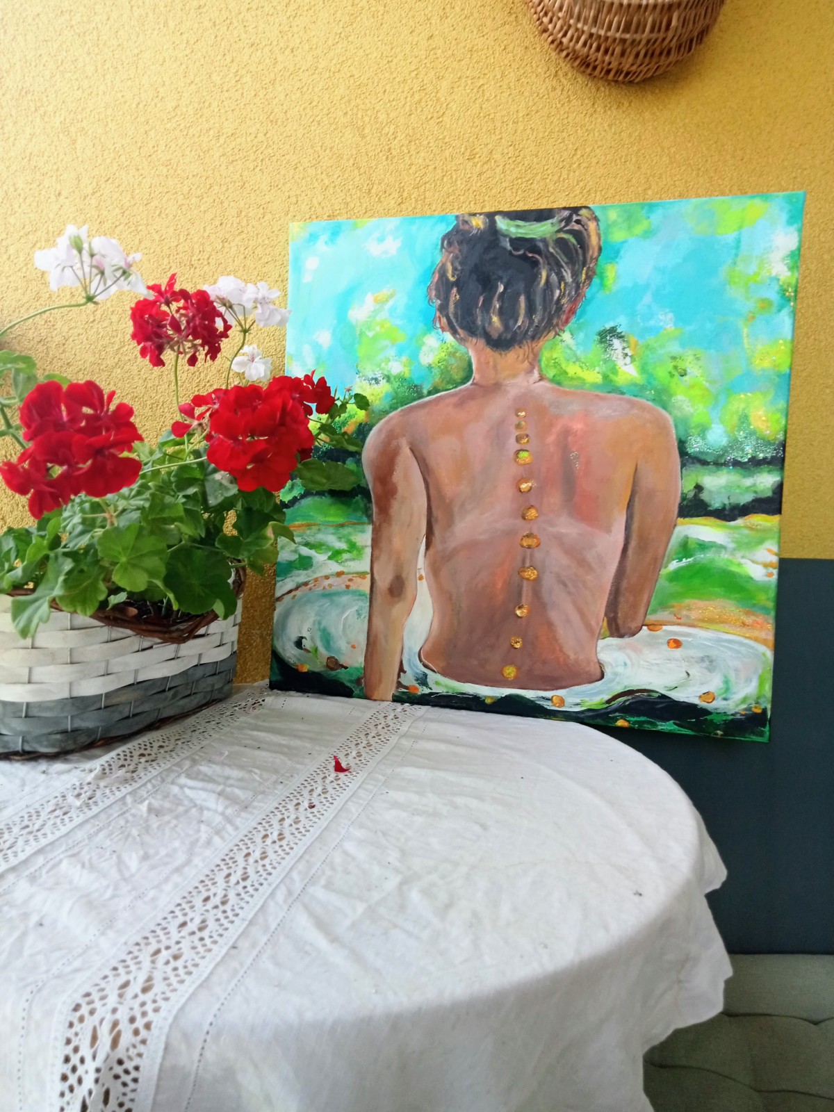 Obraz ręcznie malowany na płótnie naciągniętym na sosnowy blejtram.