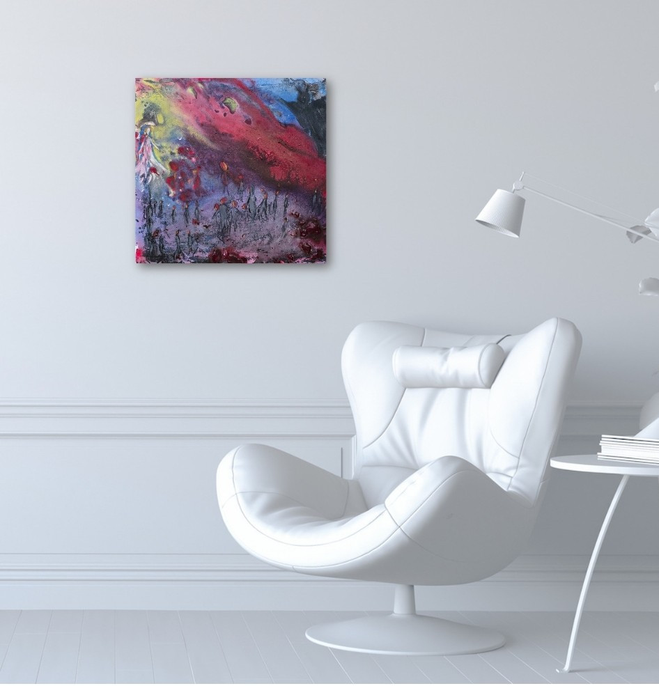 Obraz ręcznie malowany na płótnie naciągniętym na sosnowy blejtram.