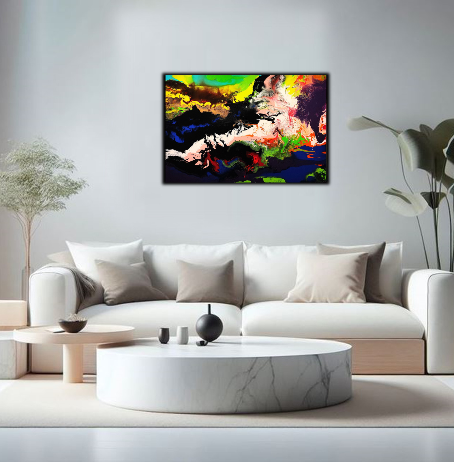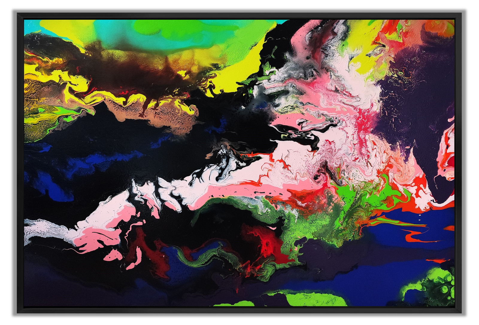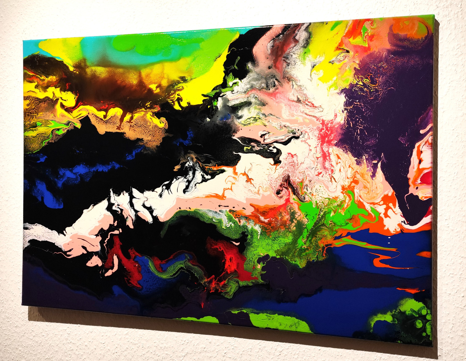 Farby akrylowe płyną swobodnie i eksplodują, odzwierciedlając wewnętrzne konflikty i nadzieję. Obraz ten wnosi energię i ruch do każdego pomieszczenia – stanowi prawdziwy impuls dla duszy i oka, zachęcając do marzeń i refleksji.