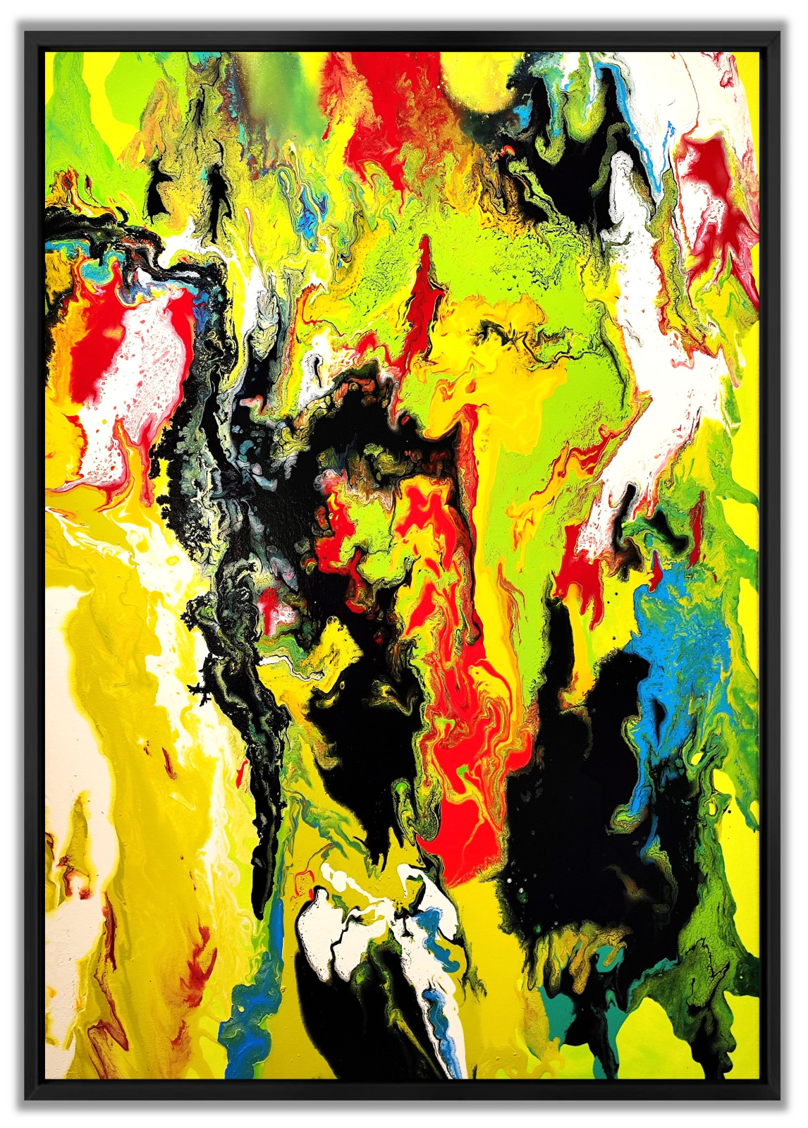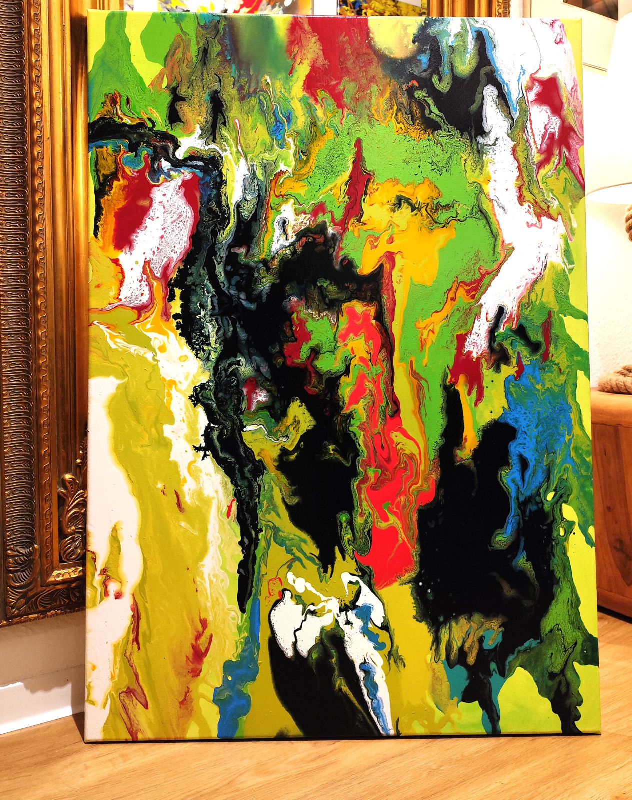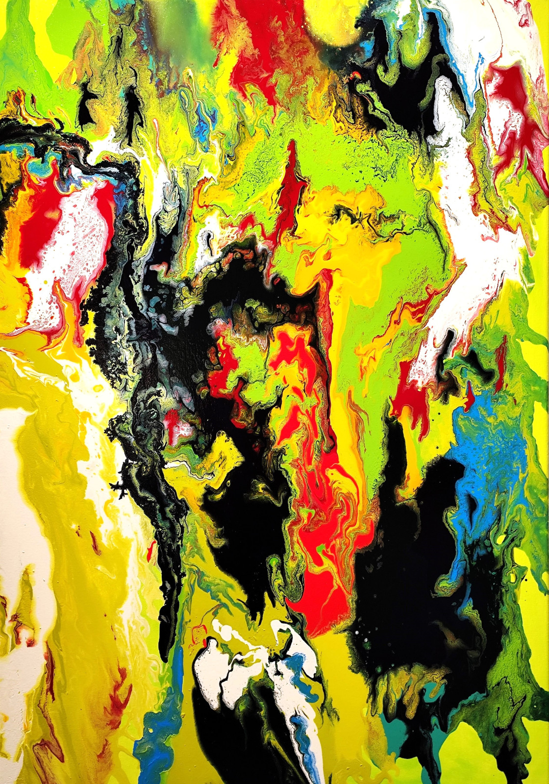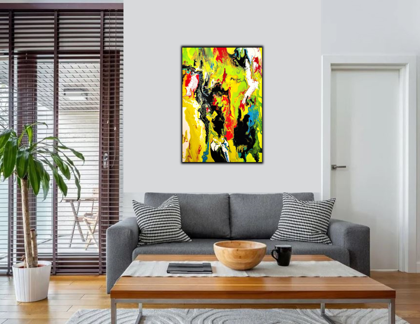 W tym obrazie wyzwalam lawinę emocji poprzez połączenie intensywnych, przenikających się kolorów. Farby akrylowe pozwalają uchwycić dynamikę w żywy i intensywny sposób. Taki obraz zachęca do odkrywania własnych emocji w płynnych formach i wnosi do każdego pomieszczenia radość i napięcie.