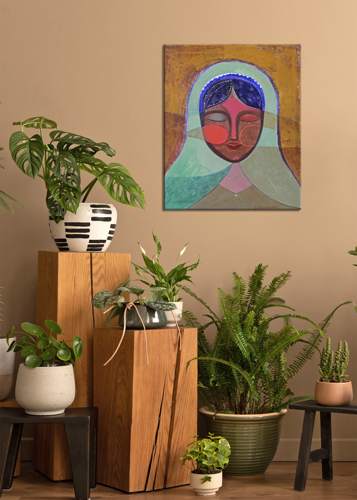 Obraz nie wymaga oprawy. Boki pomalowane. Gotowy do powieszenia.
