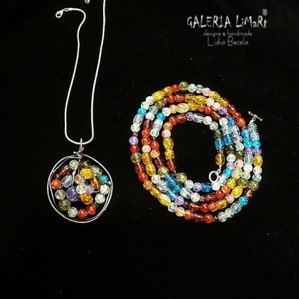 Autorska kompozycja bajecznie kolorowych koralików ze szkła crackle w cudownie pstrym ubarwieniu. Dł. ok 140 cm + dowieszany wisior unikatowo oprawiony w technice Tiffany. Energetyzujące żywe barwy ożywią każdą cerę, przyciągną spojrzenia, wywołają uśmiech. SPRAWDZONE :)
