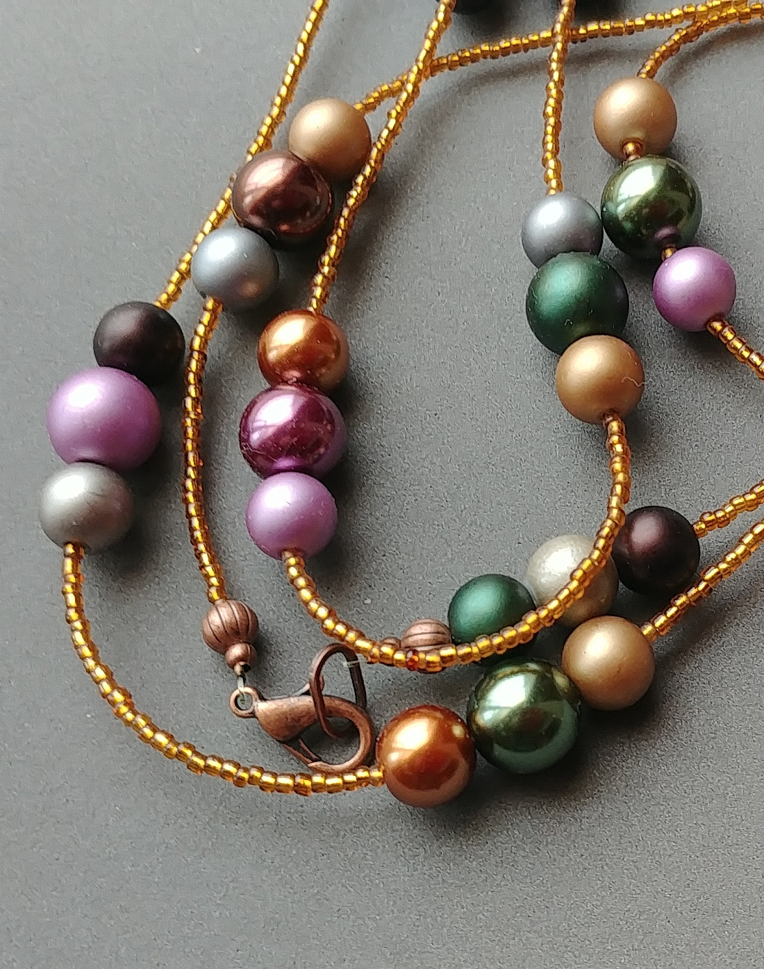 Naszyjnik w cudnych kolorach jesieni ze szklanych pereł super PREZENT handmade
