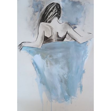 Rysunek w technice węgla i akrylu na ciepłej bieli brystolu kredowego.