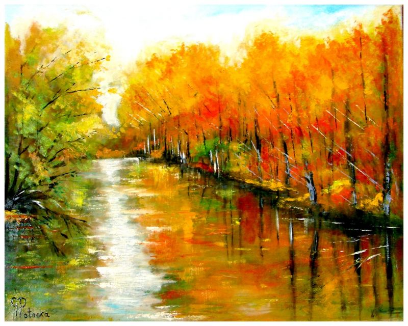 Obraz olejny na płótnie KOLORY JESIENI rozmiar 50-40 cm. Technika oleju na płótnie